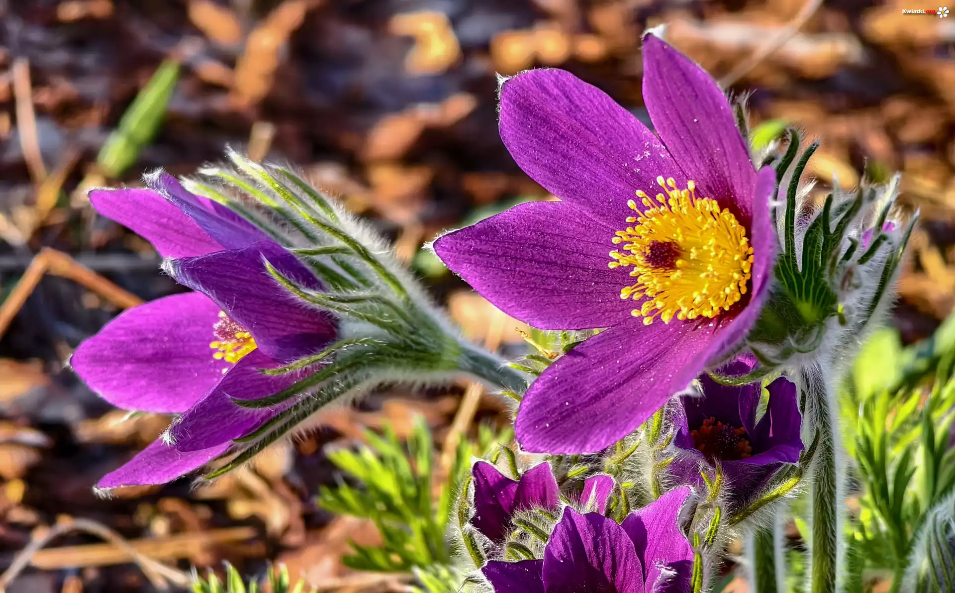 Kwiaty, Fioletowe, Rozkwitające, Sasanki - Zdjęcia