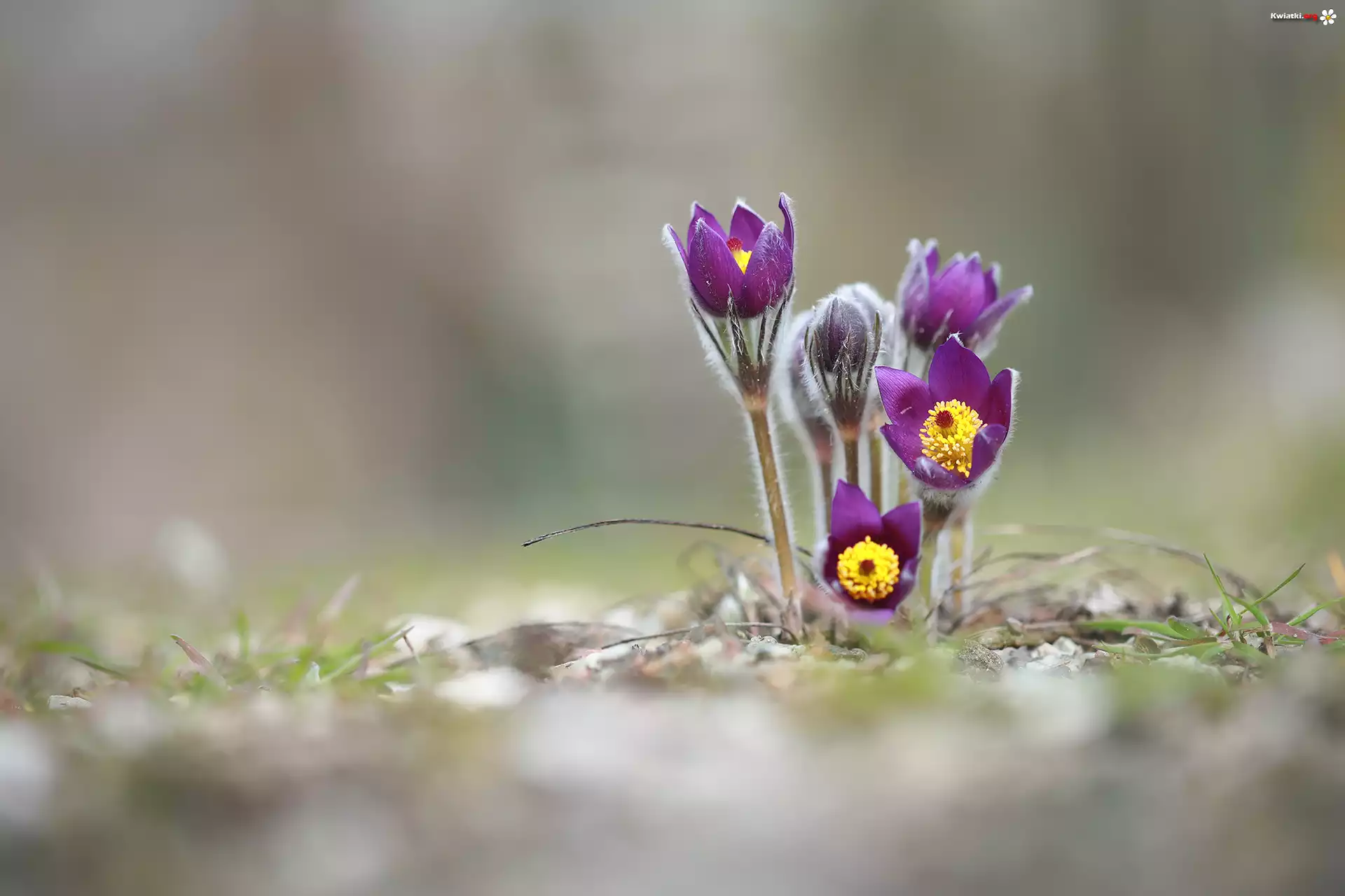 Rozkwitające, Sasanki, Fioletowe - Zdjęcia