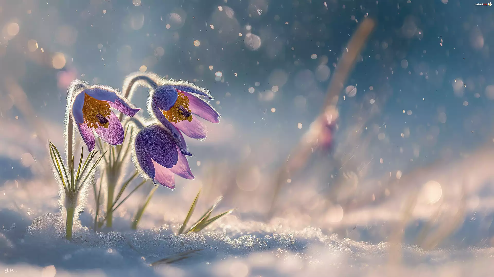 Kwiat Trzy, Sasanki, Śnieg, Grafika AI