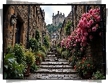 Domy, Uliczka, Brukowana, Schody, Kwiaty, AI - Zdjęcia