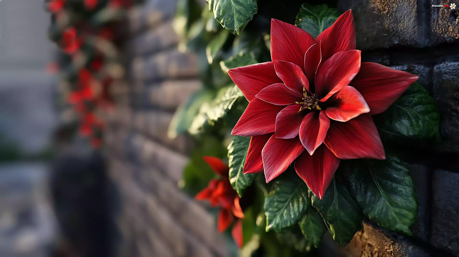 Kwiat, Czerwony, Liście, Ściana, Światło, Grafika - Zdjęcia