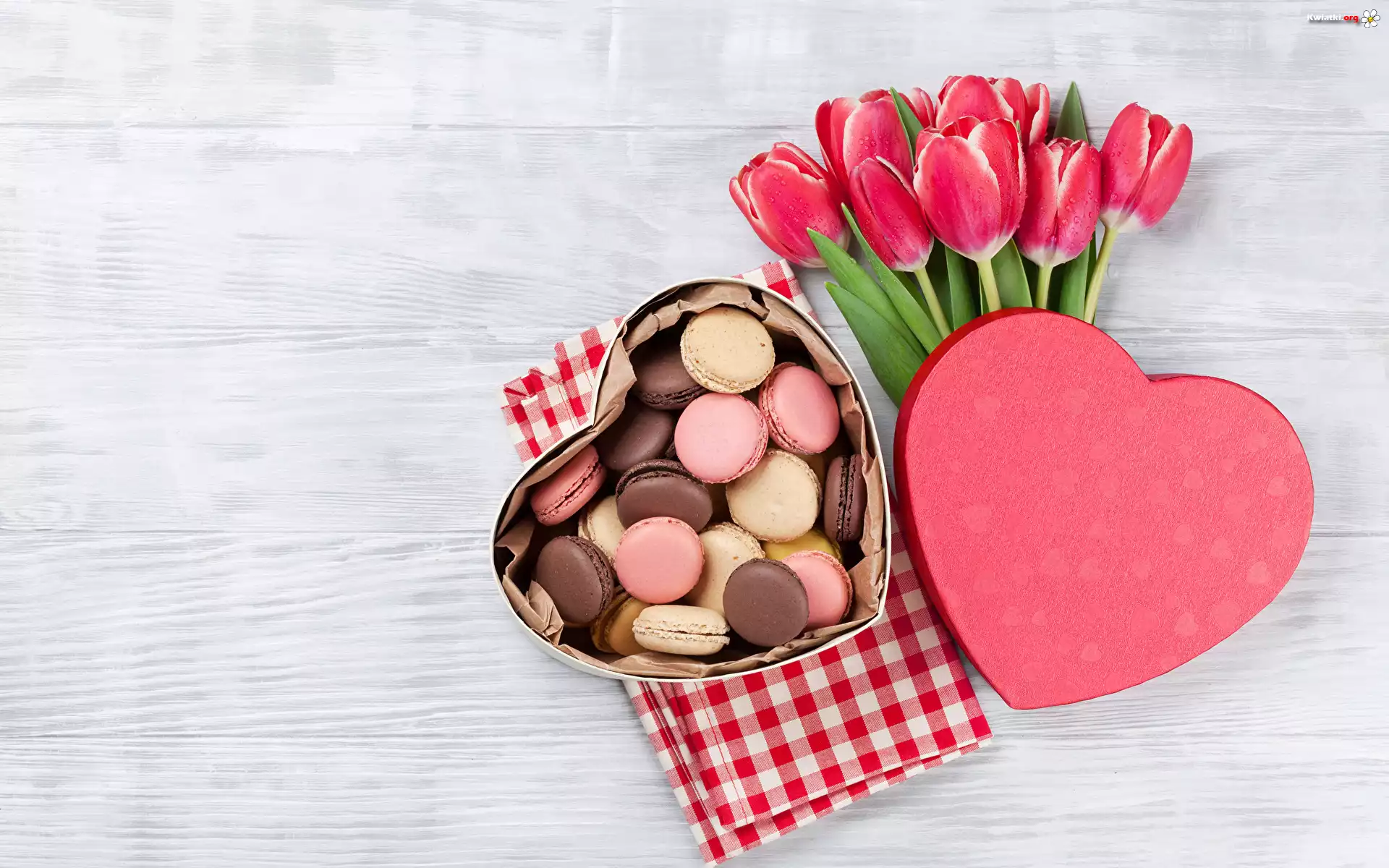 Kwiat Serduszko, Pudełko, Ciastka, Ściereczka, Czerwone, Tulipany, Deski