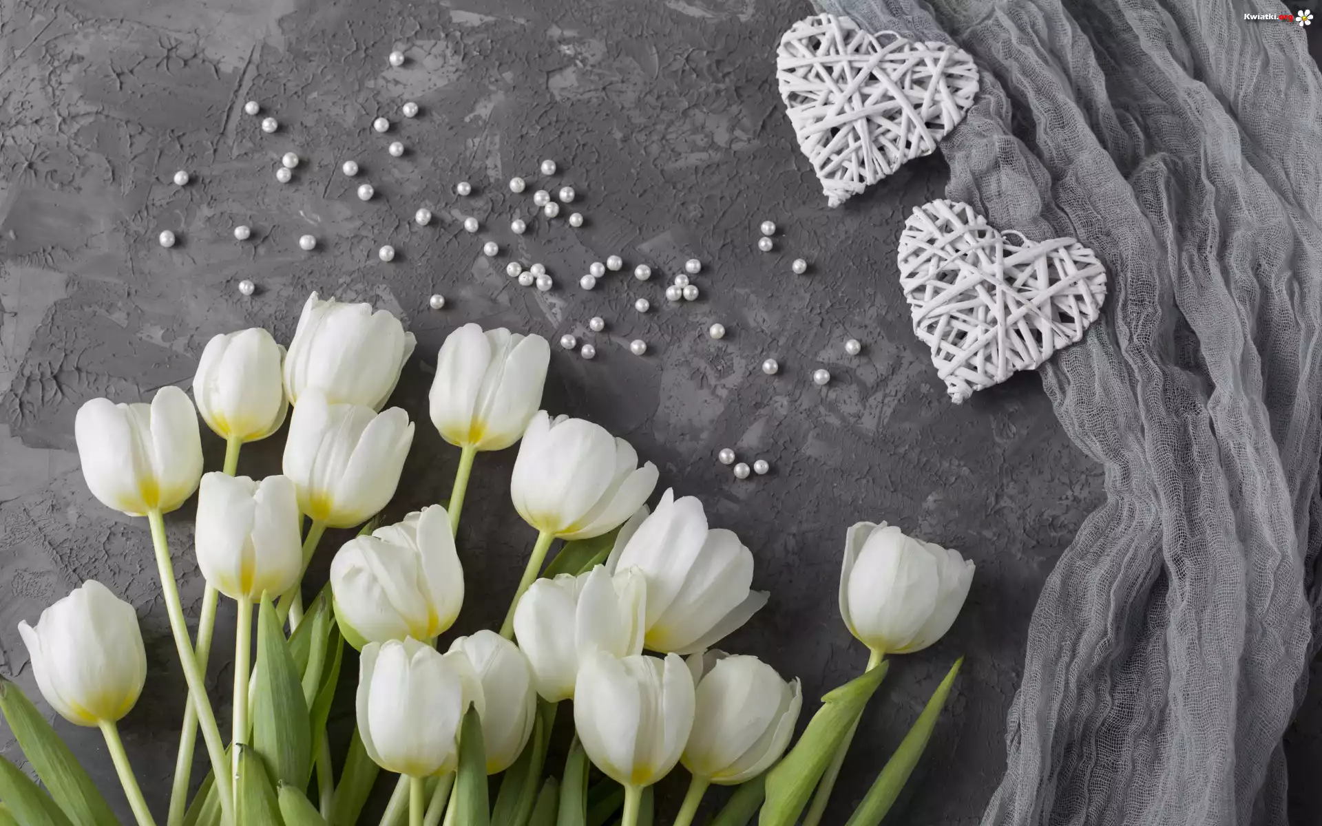 Kwiaty, Tulipany, Białe, Serca, Dwa, Tło, Szare - Zdjęcia