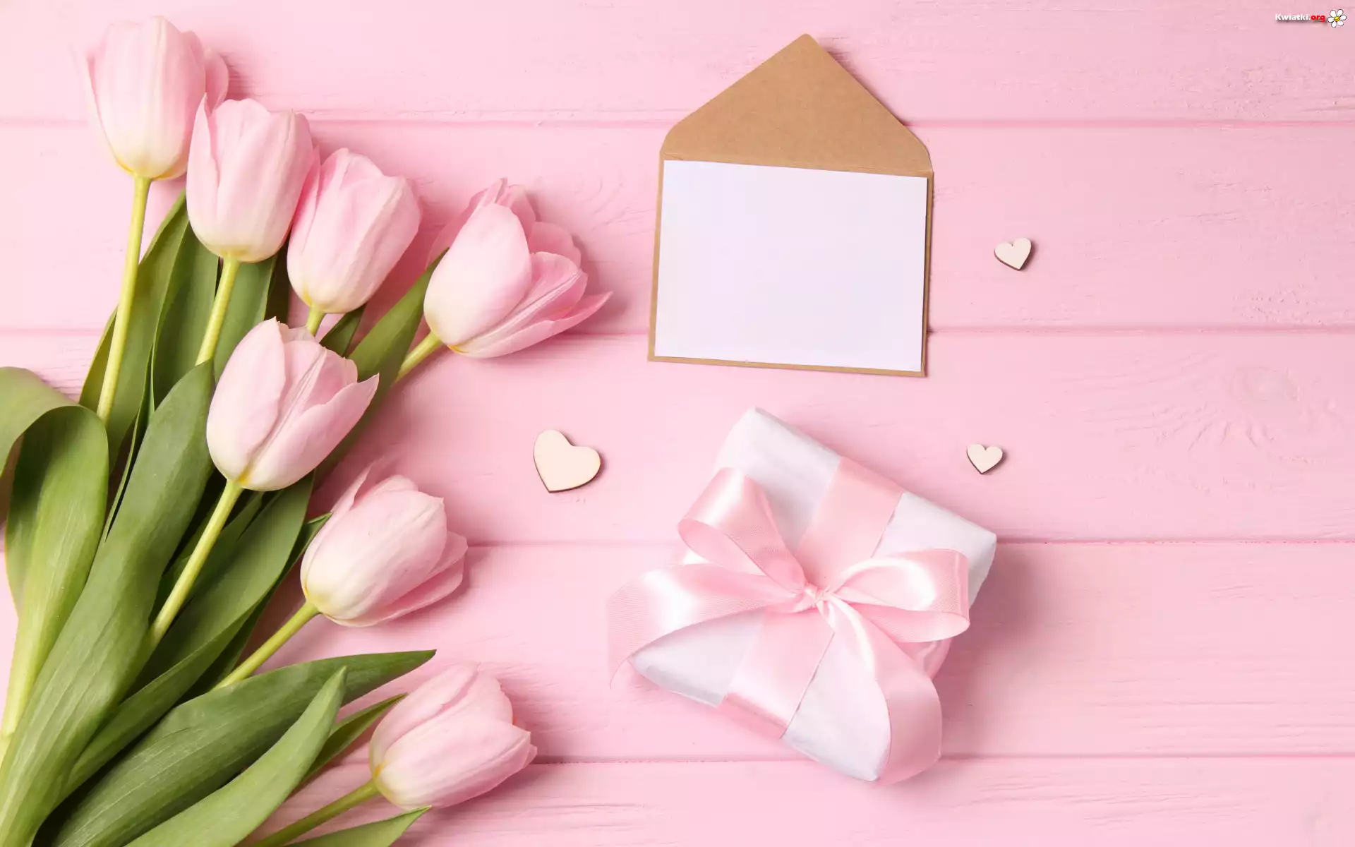 Kwiat Kwiaty, Tulipany, Różowe, Serca, Prezent, Deski