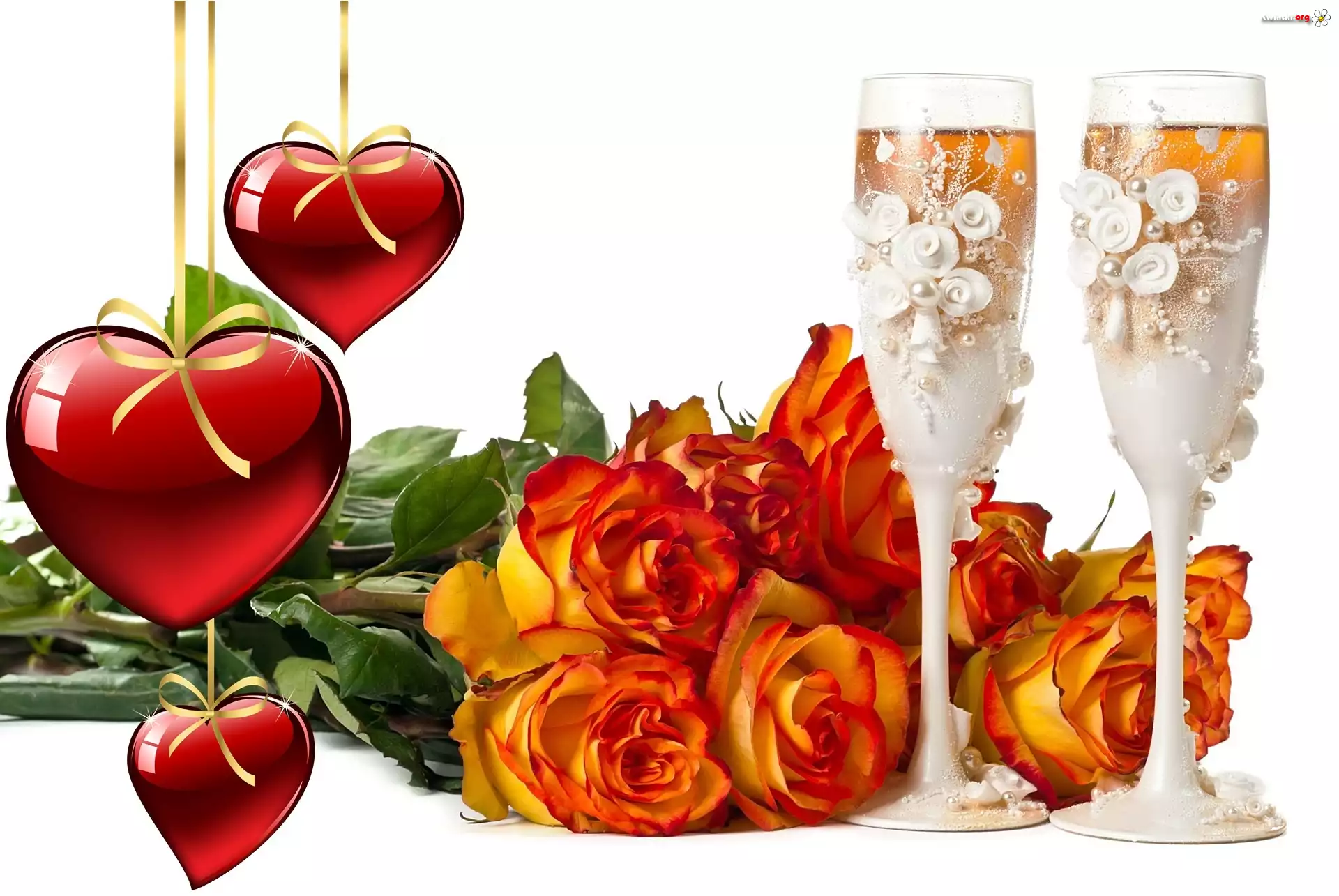 Serca, Róże, Ozdobne Kieliszki, Walentynki - Zdjęcia