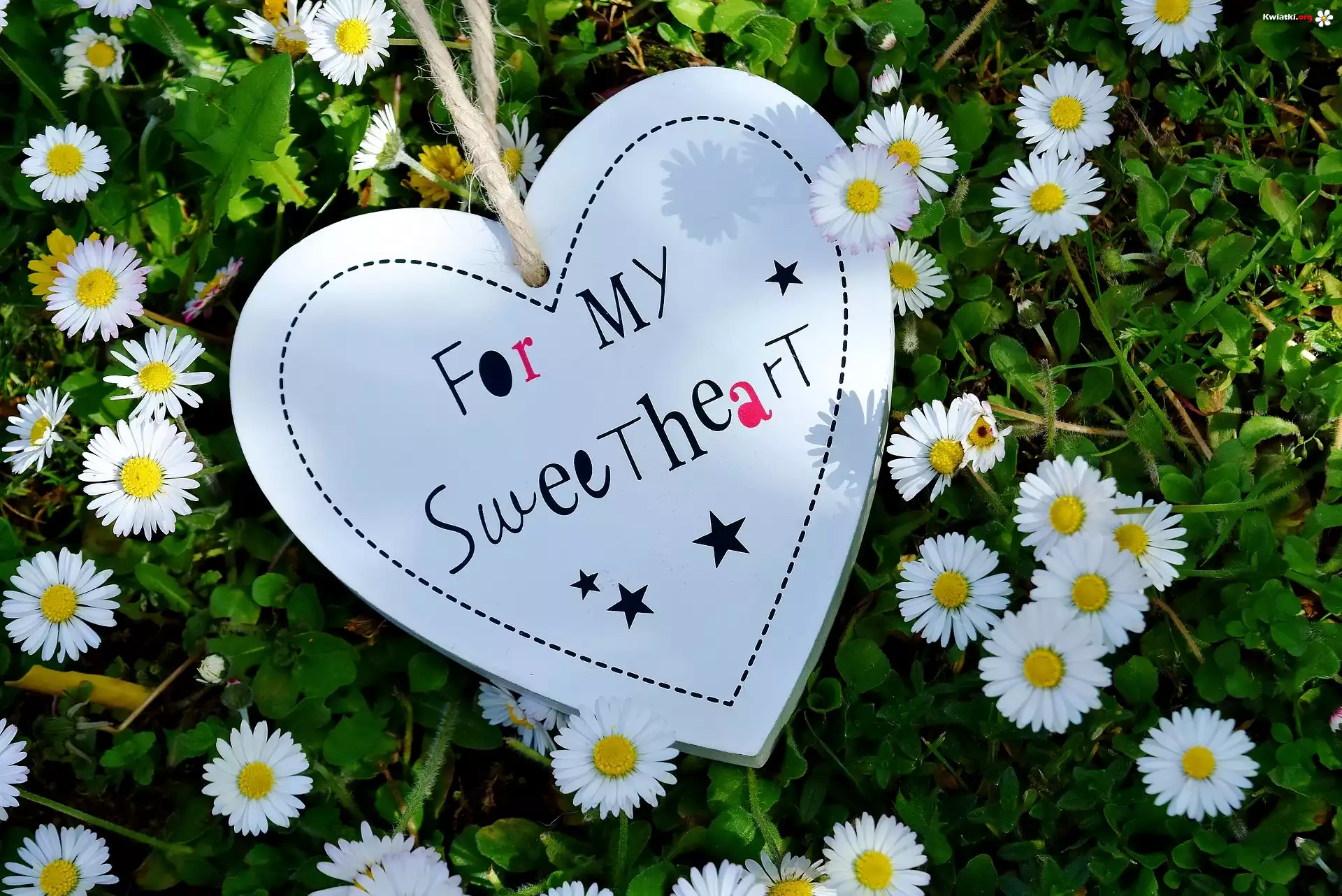 Serce, Zawieszka, Napis, Miłość, Stokrotki - Zdjęcia