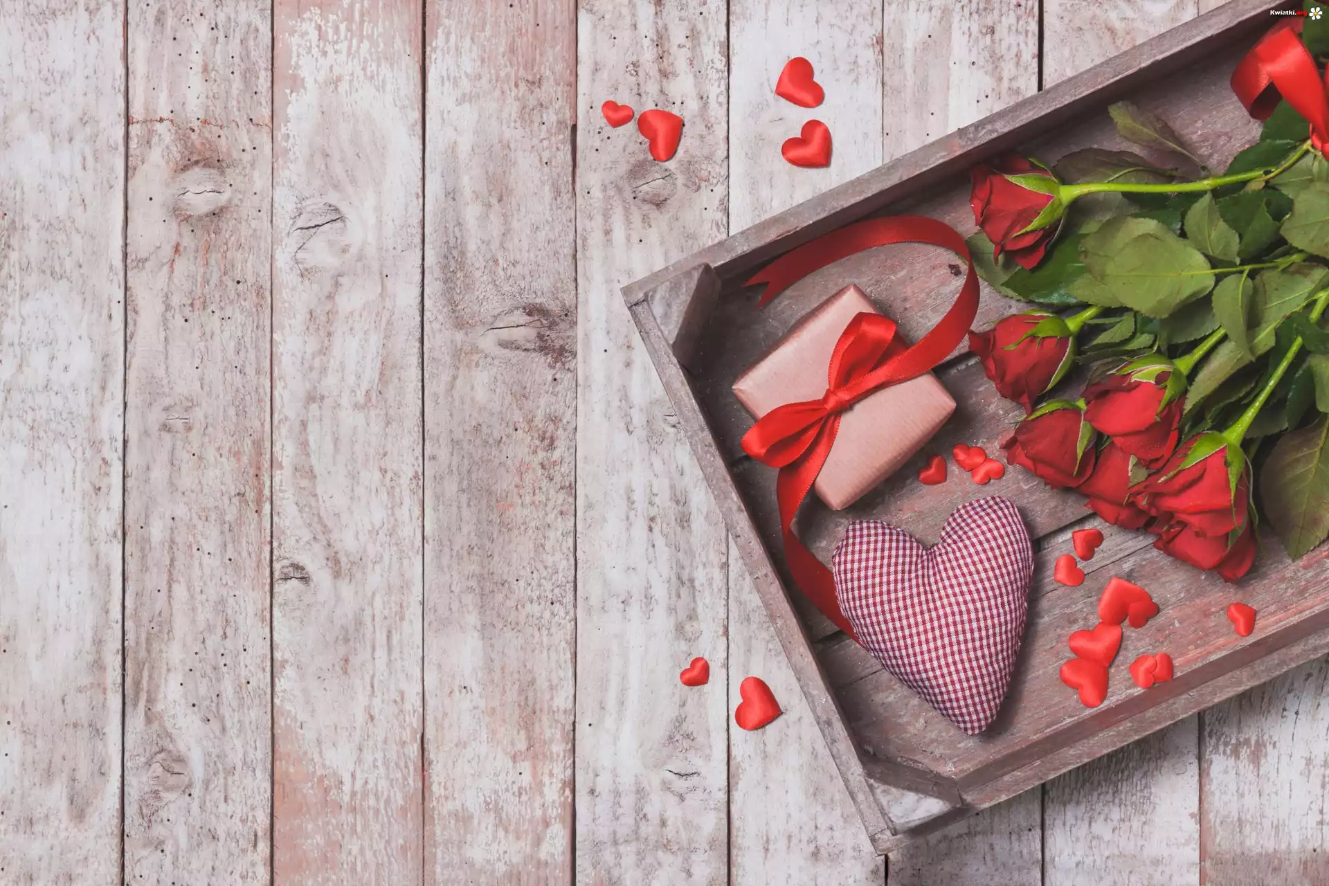 Skrzynka, Serce, Prezent, Róże, Deski, Serduszka, Kompozycja - Zdjęcia