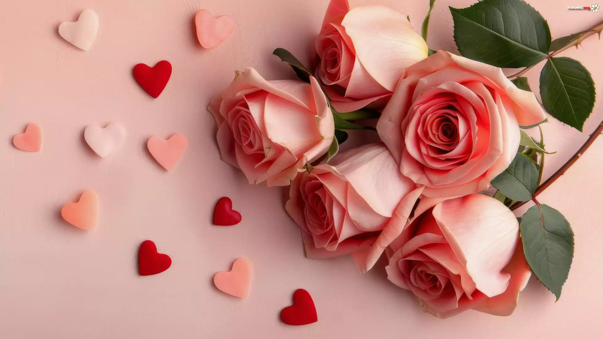 Kwiaty, Róże, Różowe, Serduszka - Zdjęcia
