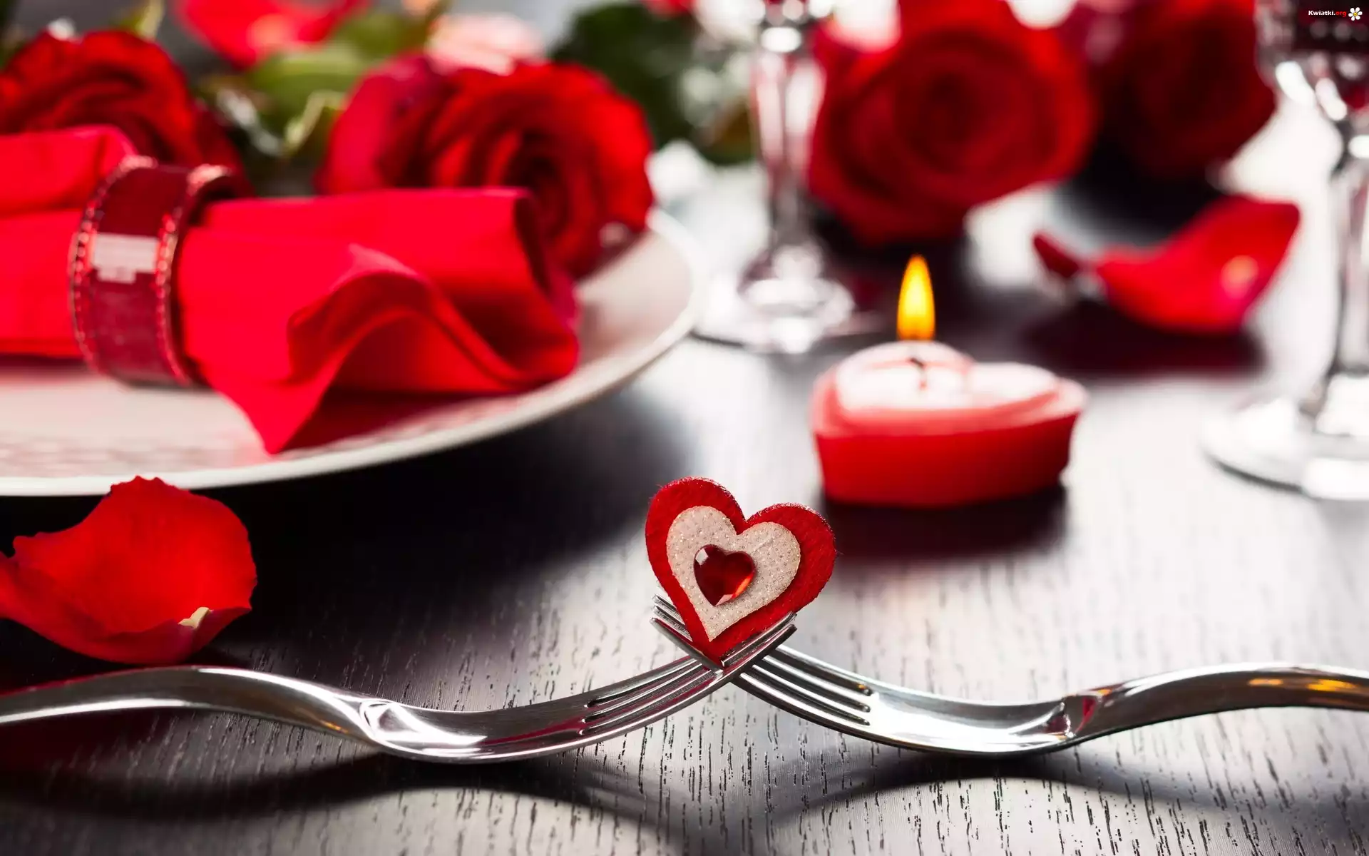 Kwiat Serduszko, Świeca, Róże, Walentynki