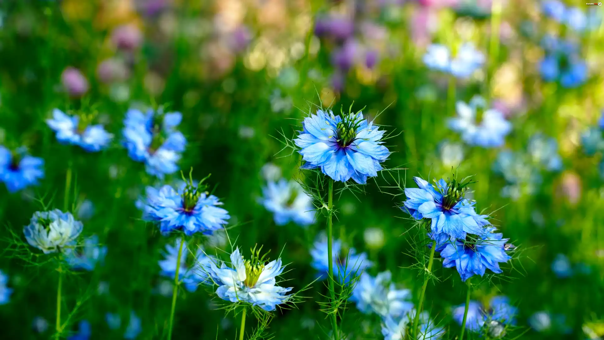 Niebieskie, Kwiaty, Czarnuszki siewne - Zdjęcia