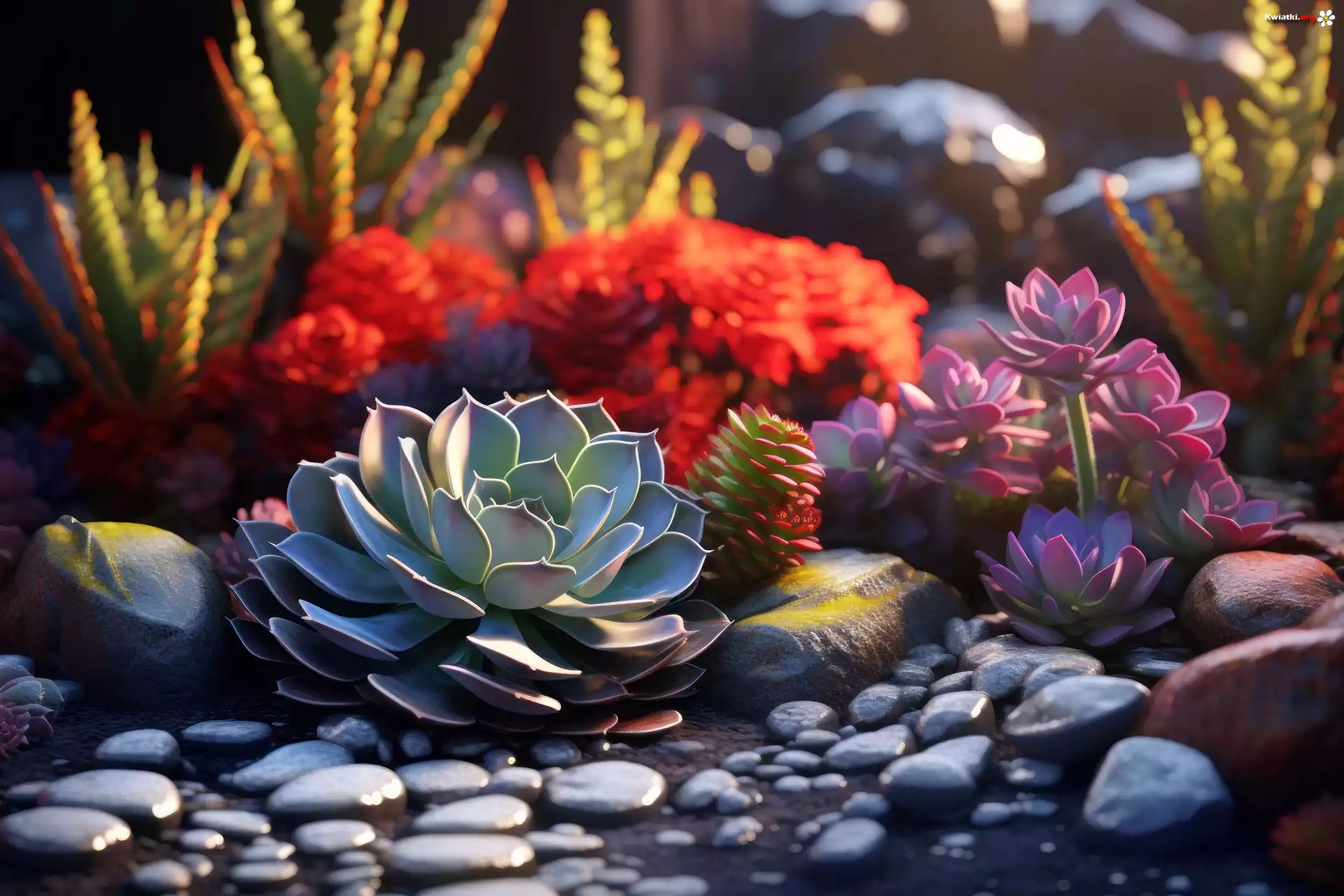 Rośliny, Eszeweria, Kamienie, Skalniak, Światło, Grafika - Zdjęcia
