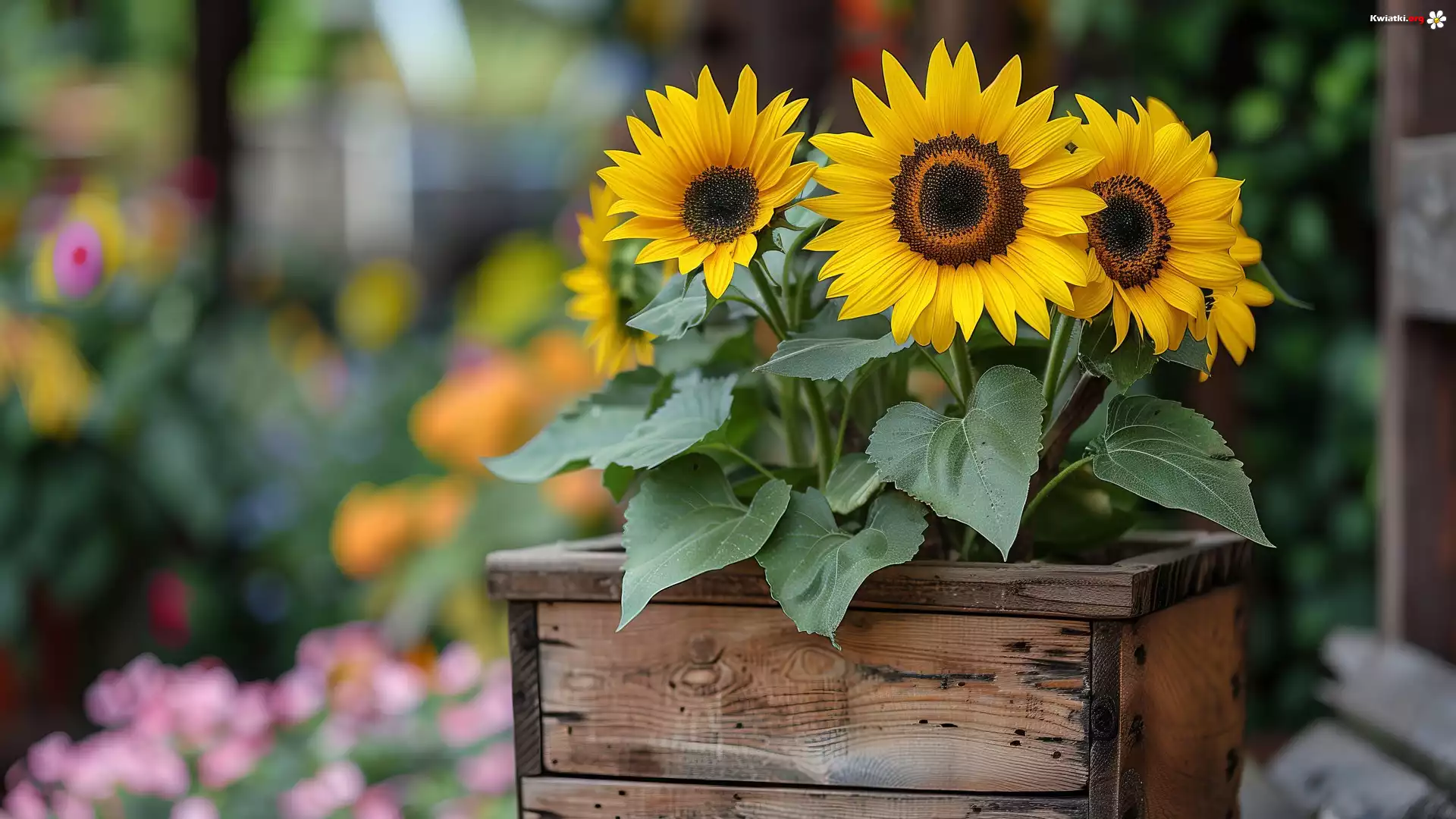 Kwiat Kwiaty, Żółte, Słoneczniki, Skrzynka