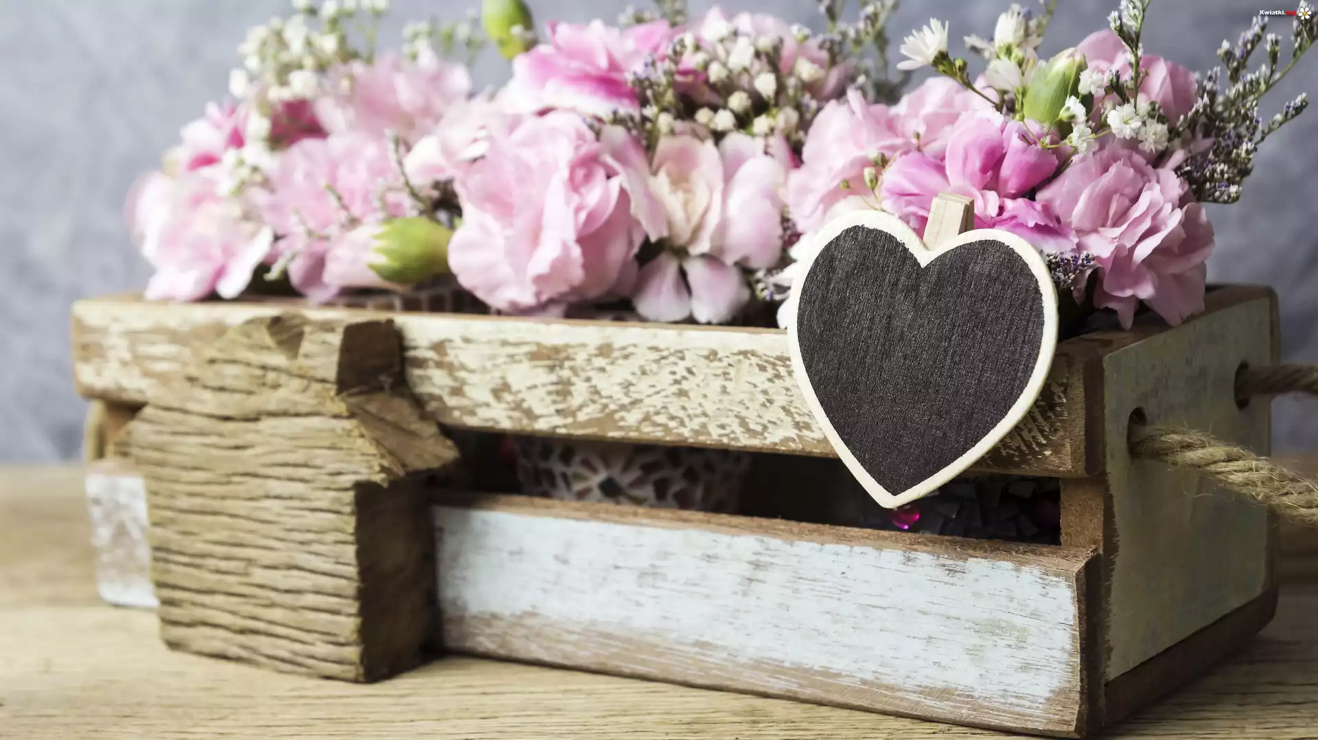 Skrzynka, Kwiaty, Goździki Szabo, Serce, Dekoracja - Zdjęcia