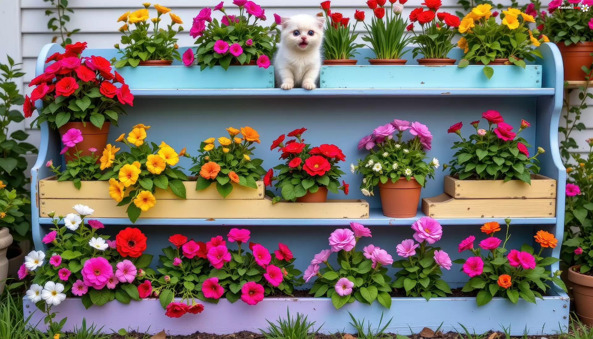 Kwiat Kot, Kwiaty, Doniczki, Skrzynki, Półki, Niebieskie