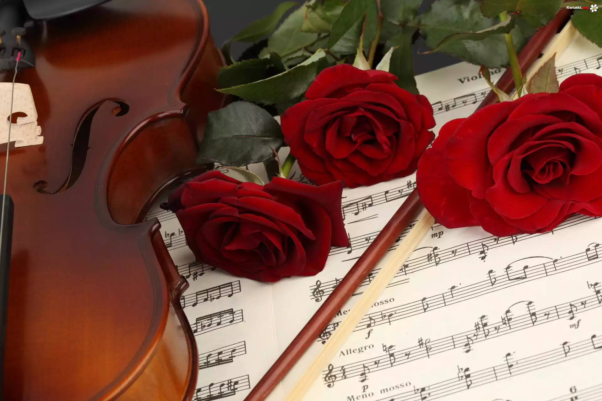 Kwiat Skrzypce, Instrument, Muzyczny, Nuty, Róże