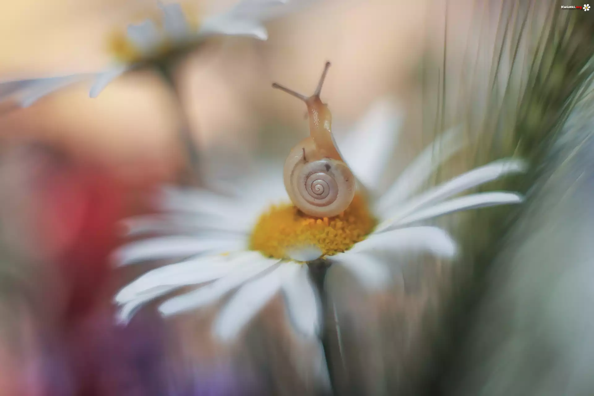 Ślimak, Kwiaty, Margerytki - Zdjęcia