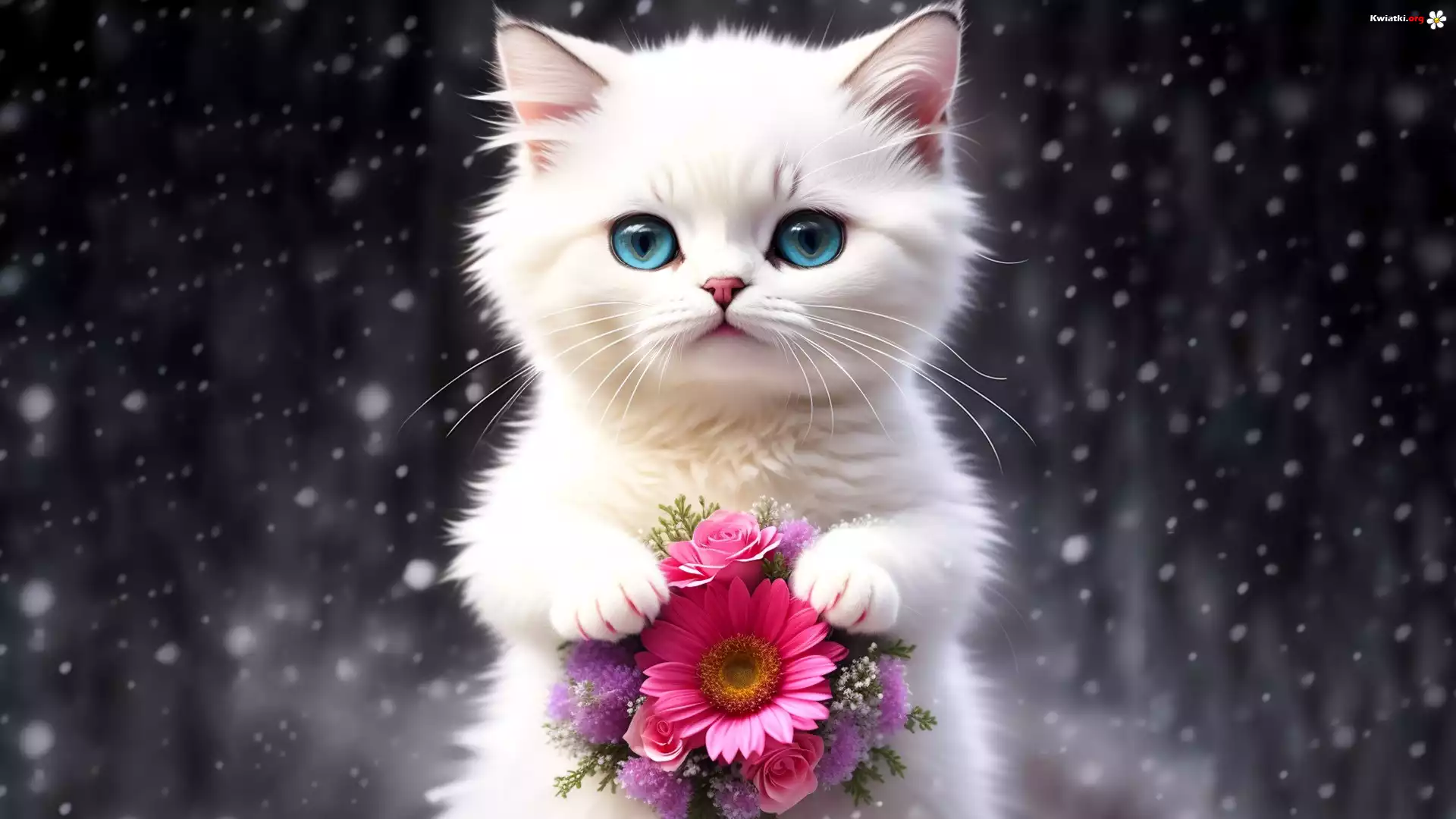 Kwiat Biały, Kotek, Kwiaty Słodkie Zwierzęta, Dla dzieci