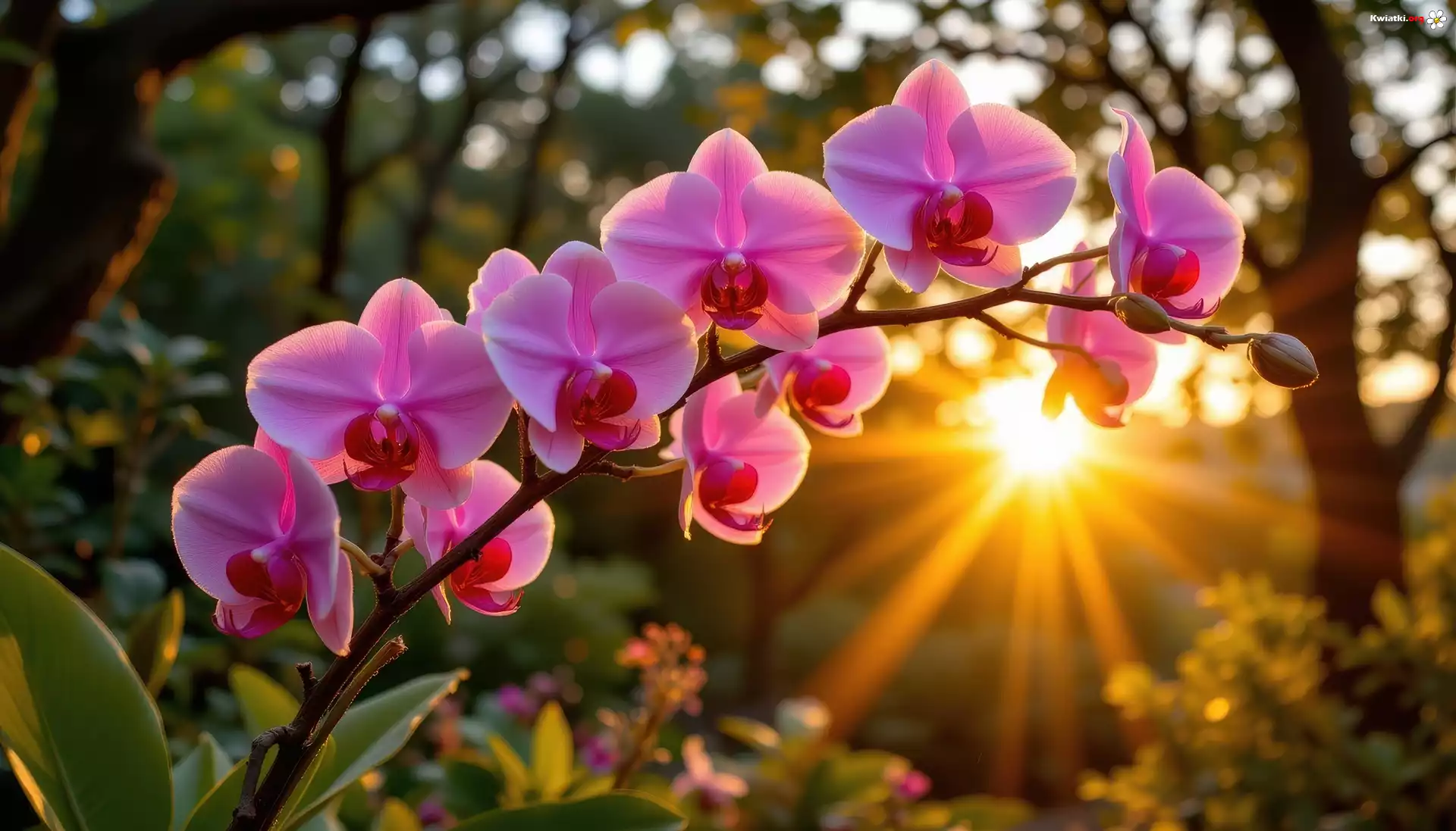 Storczyk, Orchidea, Promienie słońca, Grafika AI - Zdjęcia