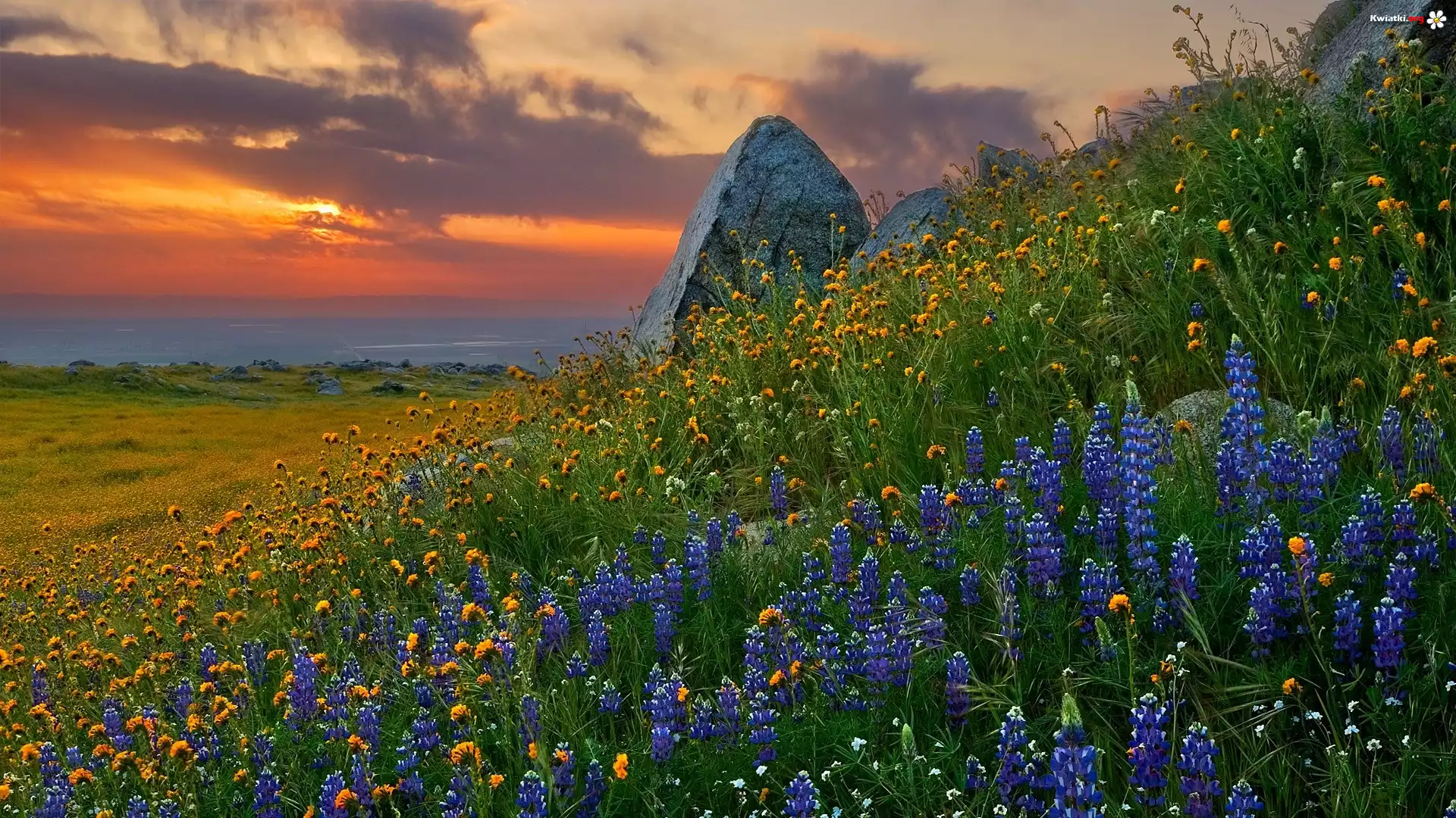 Zachód, Słońca, Kwiaty - Zdjęcia