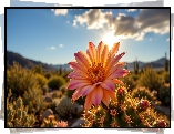 Kwiat Kaktus, Kwiat, Niebo, Słońce, Grafika AI