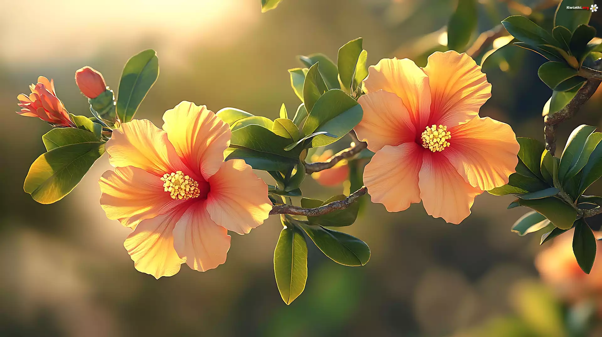 Hibiskus, Kwiaty, Gałązka, Słoneczne, Światło, Grafika - Zdjęcia