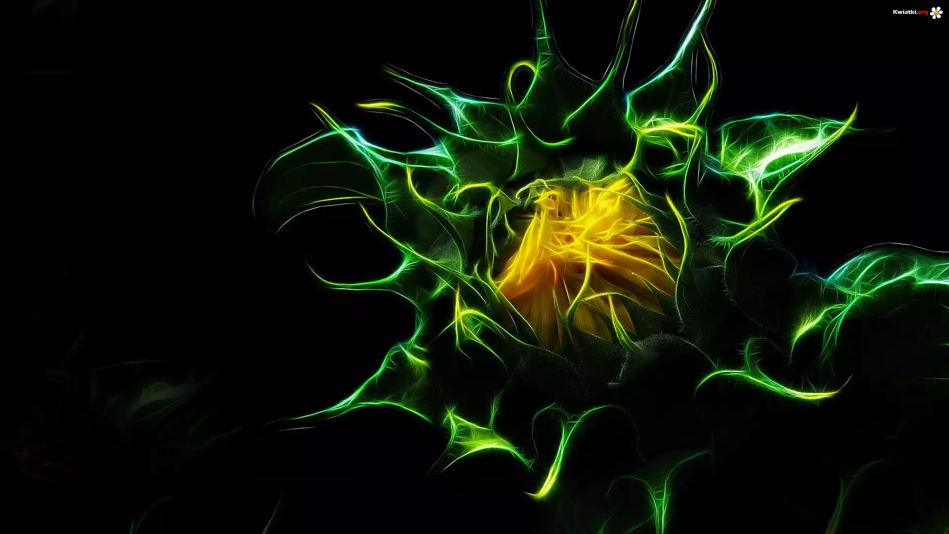 Słonecznik, Grafika, Fractalius, Czarne, Tło - Zdjęcia