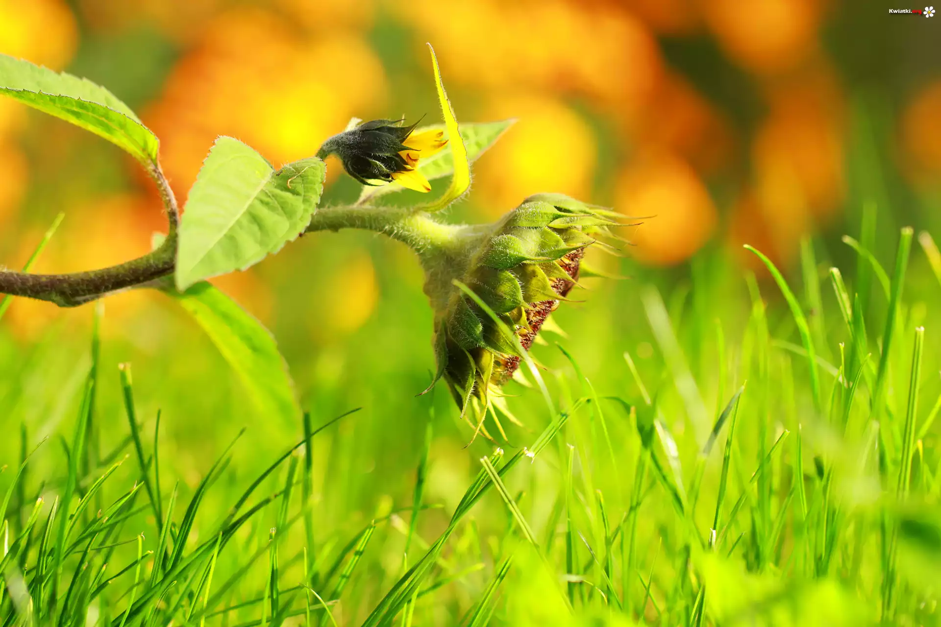 Kwiat Słonecznik, Żółty, Kwiat, Trawa