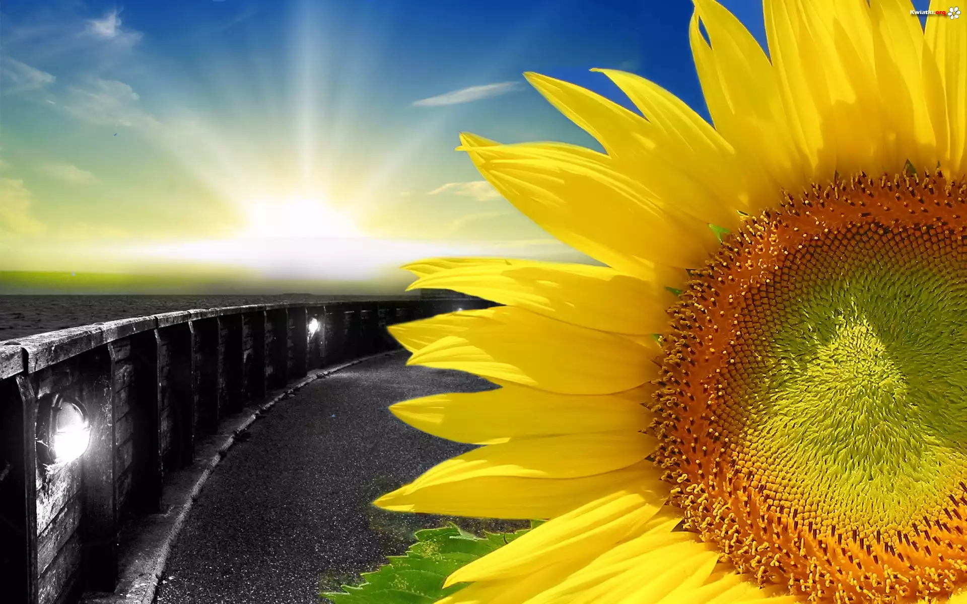 Słonecznik, Niebo, Zachód słońca, Ocean - Zdjęcia