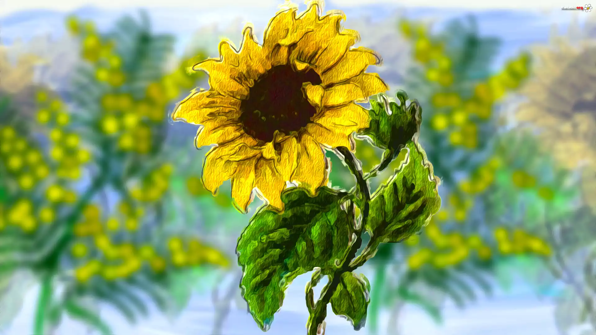 Kwiat Słonecznik, Rozmyte tło, Grafika