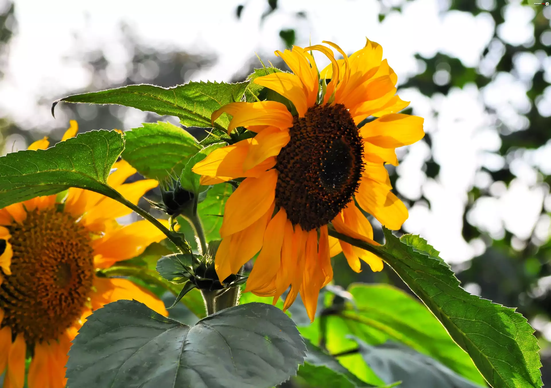 Trzmiel, Słonecznik Bukiecik, Słoneczników Słonecznik ozdobny Słoneczniki Żółty, Słonecznik Pole, Słoneczników Żółte, Kwiaty, Słonecznika Słonecznik, Liście, Chmury, Niebo Błękitne, Niebo, Słonecznik Słonecznik, Zielone, Listki Kosz, Pełen, Słoneczników Słonecznik zwyczajny Helianthus Słonecznik, Kalendarz 2011