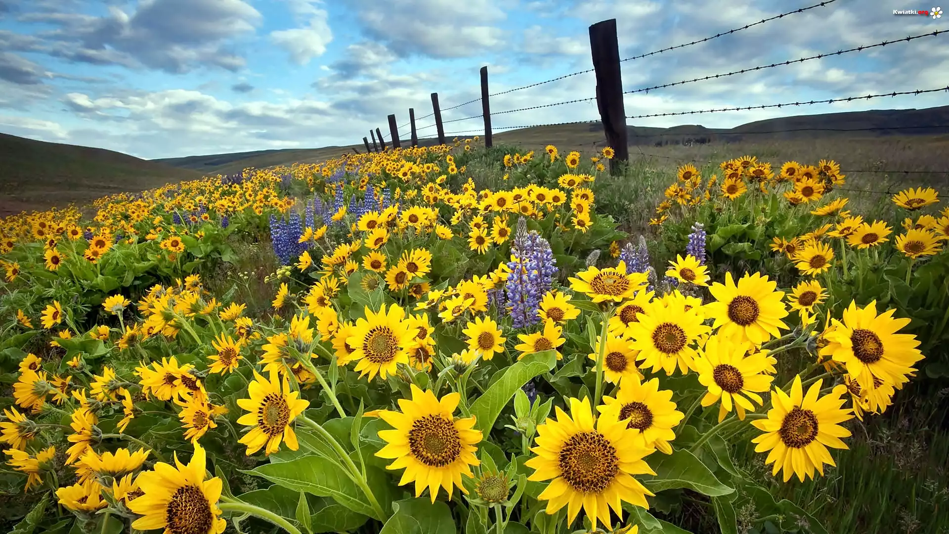 Kwiat Łąka, Słoneczniki, Ogrodzenie