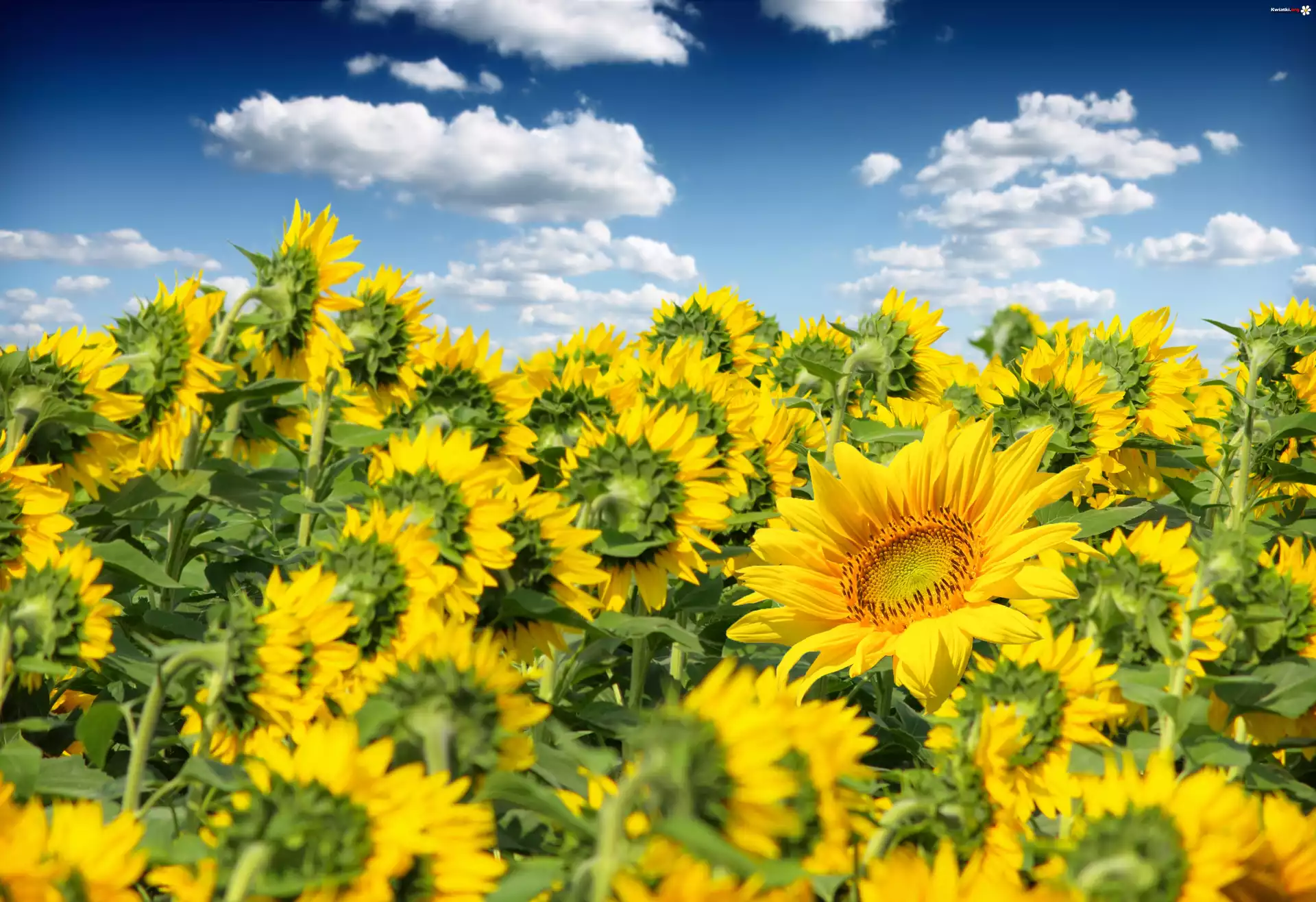 Słoneczniki, Chmury - Zdjęcia