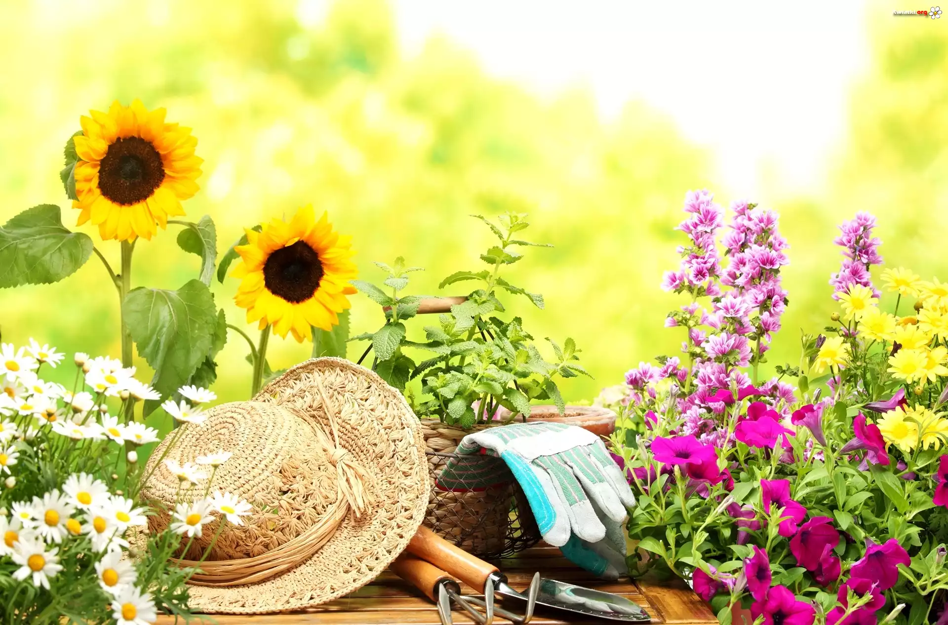 Słoneczniki, Rumianek, Kapelusz, Kolorowe, Kwiaty - Zdjęcia