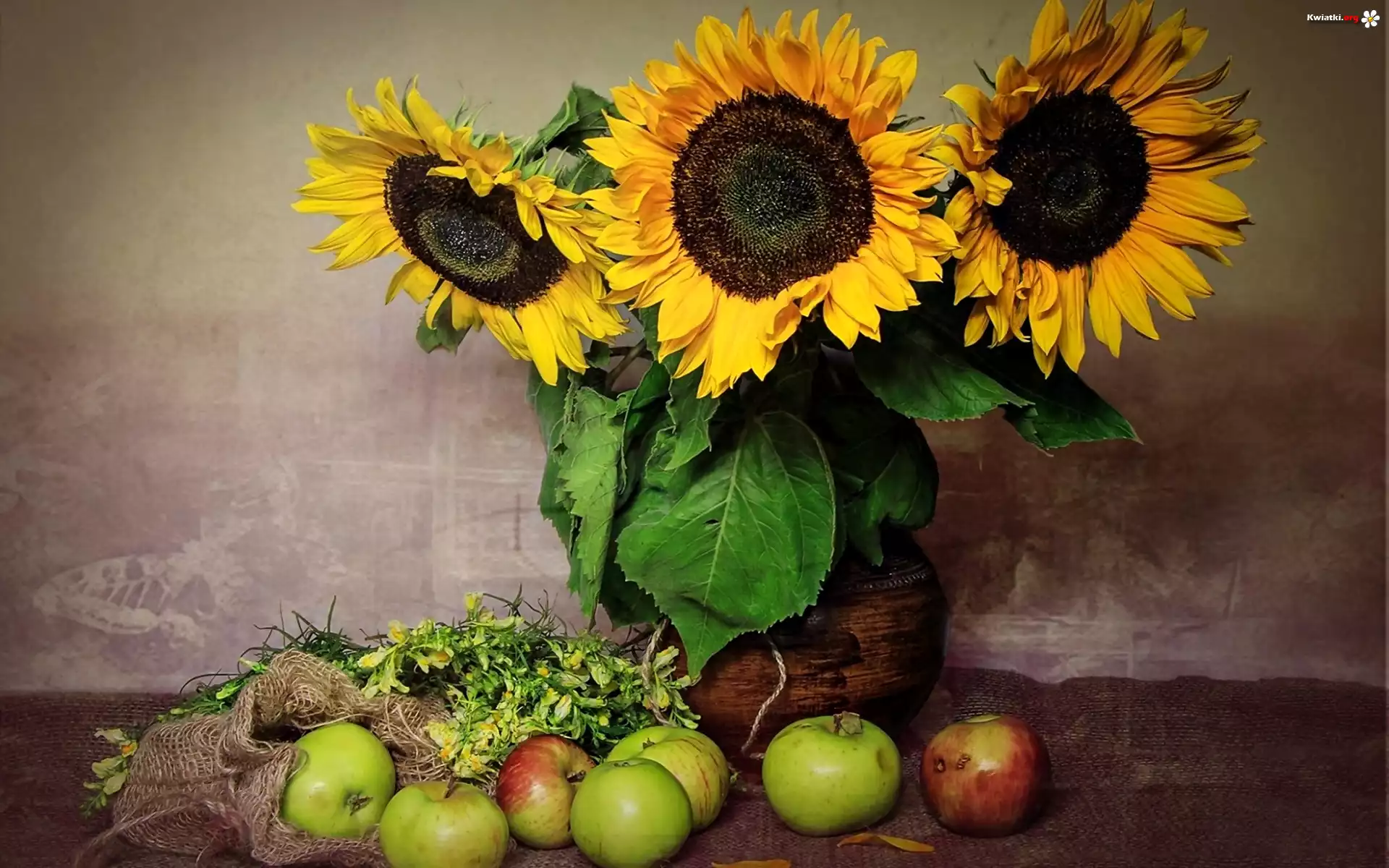 Kompozycja, Słoneczniki, Jabłka - Zdjęcia