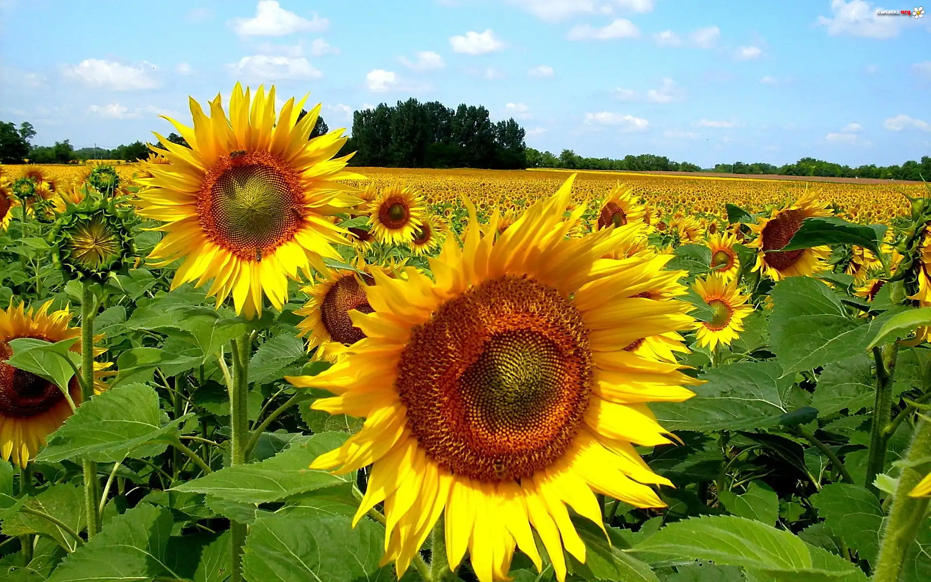 Kwiaty, Słoneczniki, Niebo - Zdjęcia