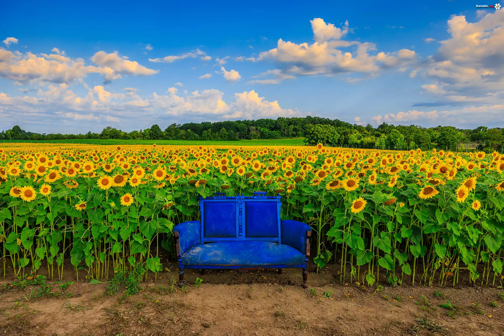 Pole, Słoneczniki, Niebieska, Kanapa, Niebo - Zdjęcia