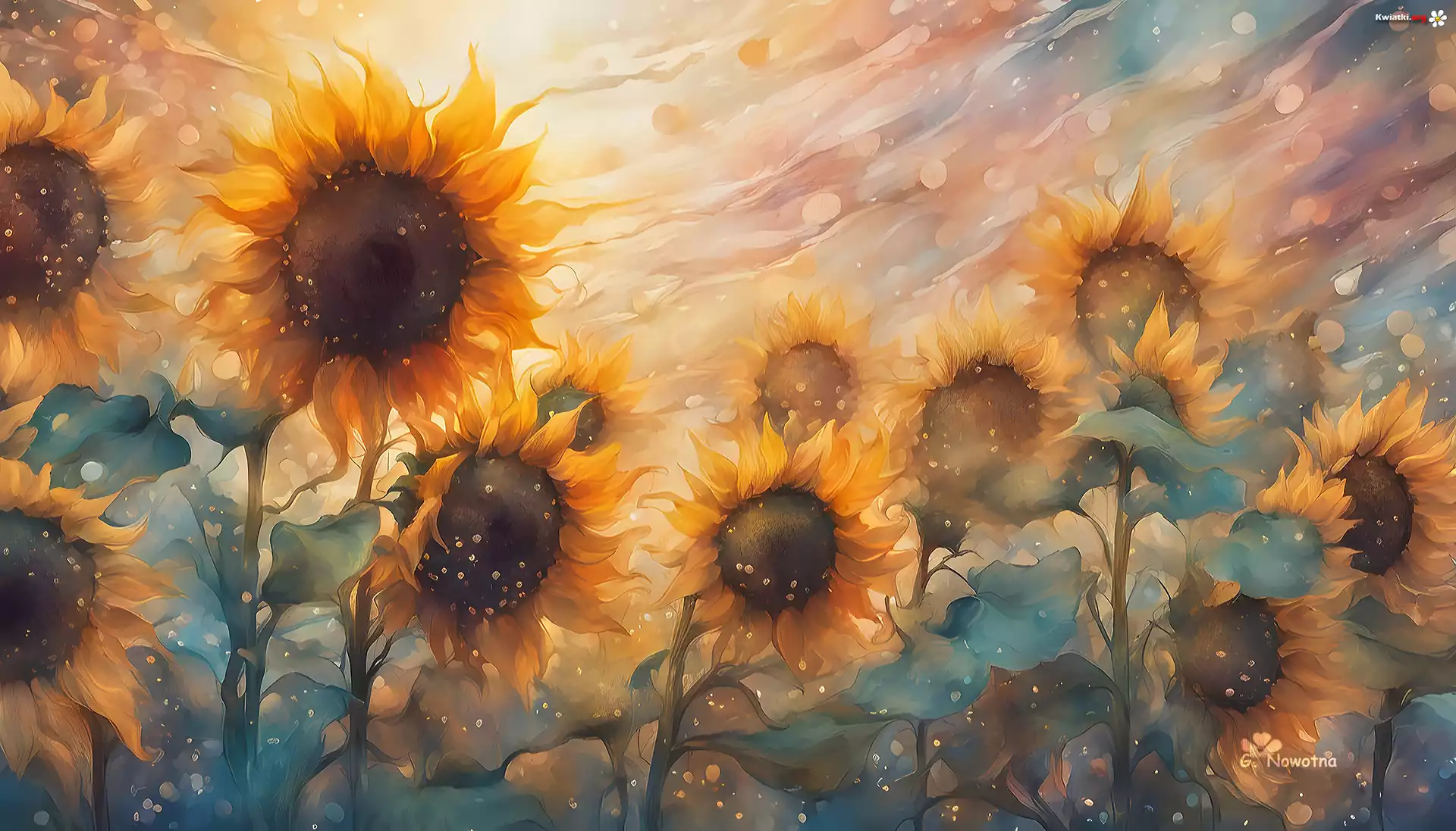 Słoneczniki, Grafika, Rozmycie - Zdjęcia