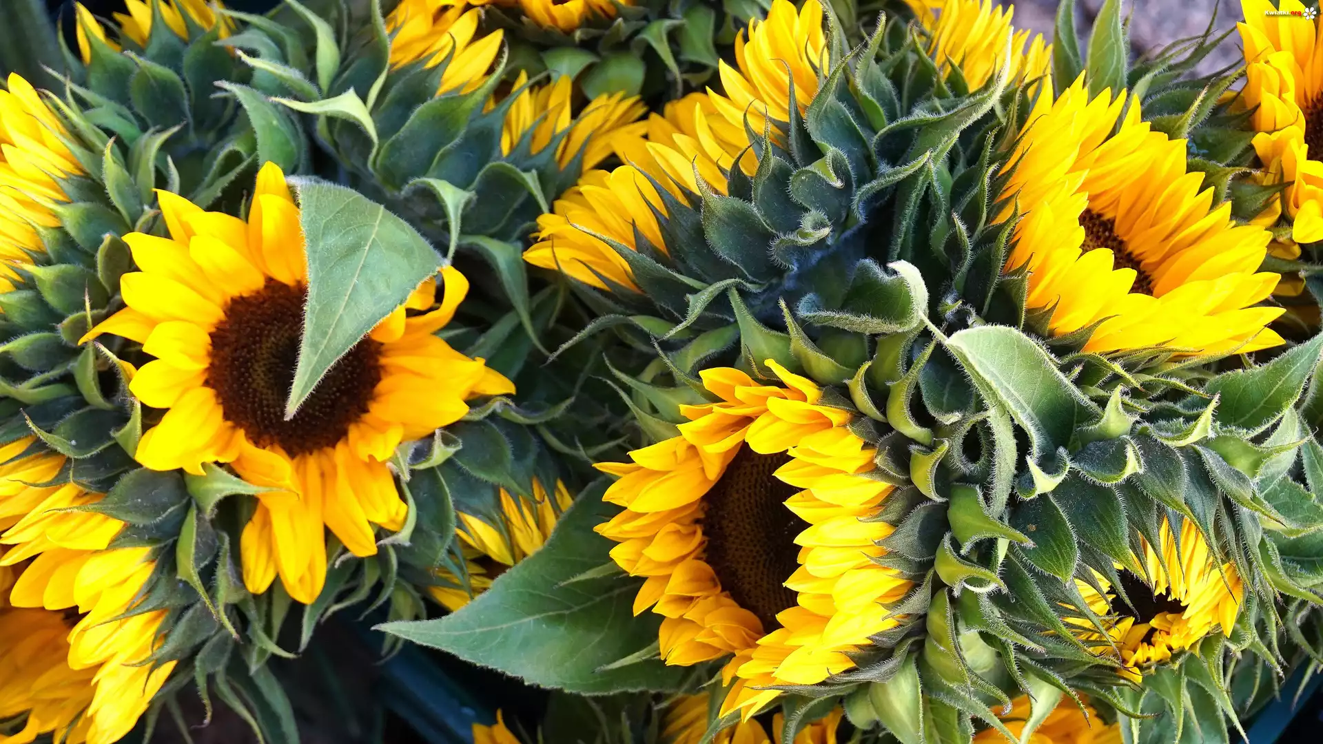 Kwiat Rozwinięte, Słoneczniki, Liście