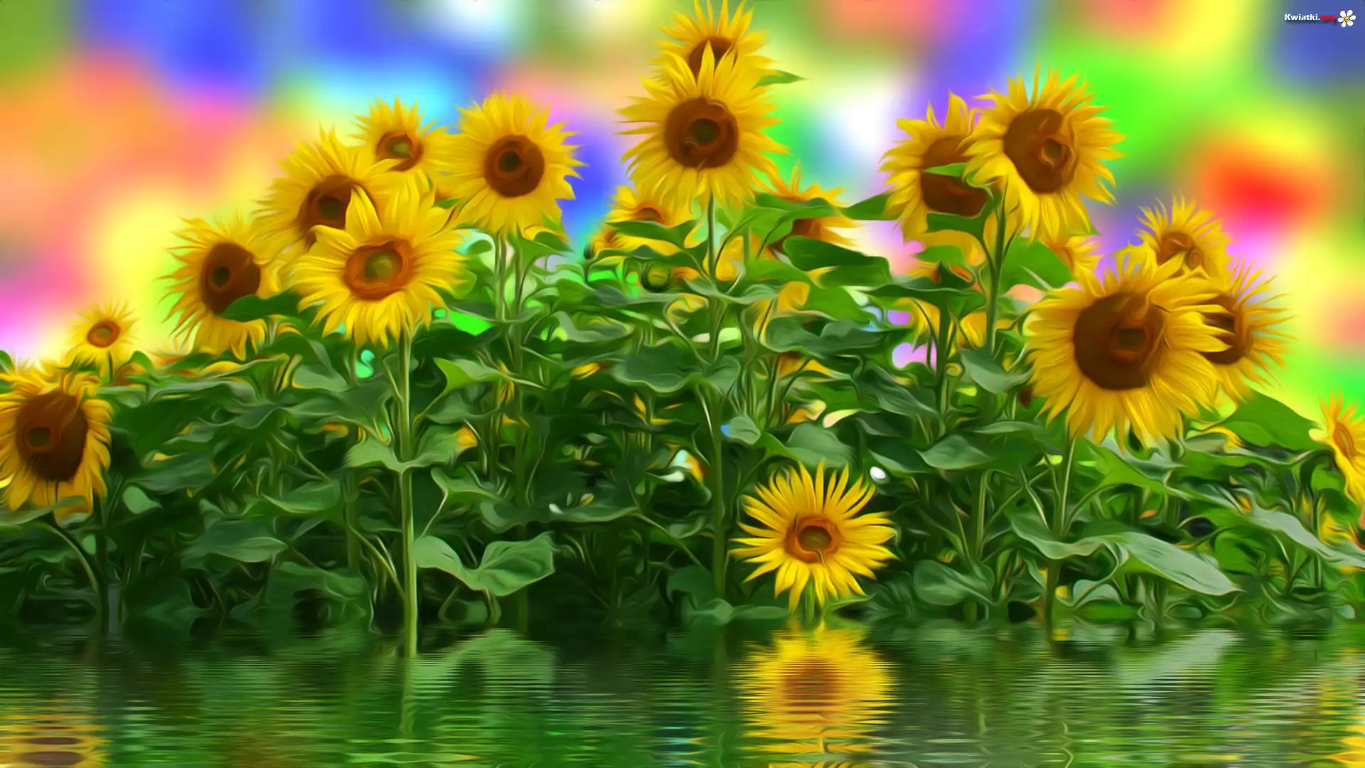 Słoneczniki, Odbicie, Woda, Grafika - Zdjęcia