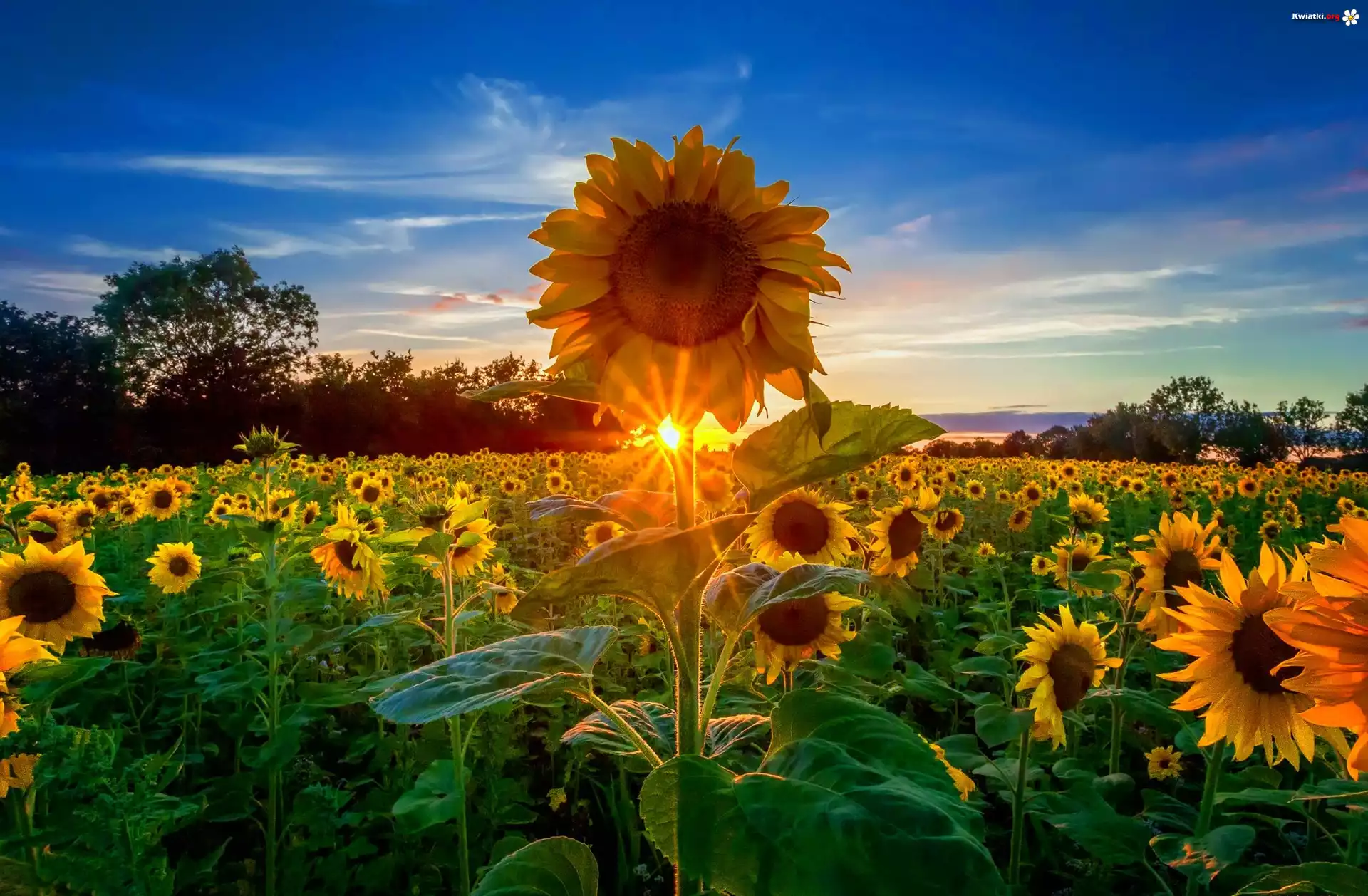 Słoneczniki, Lato, Zachód Słońca - Zdjęcia