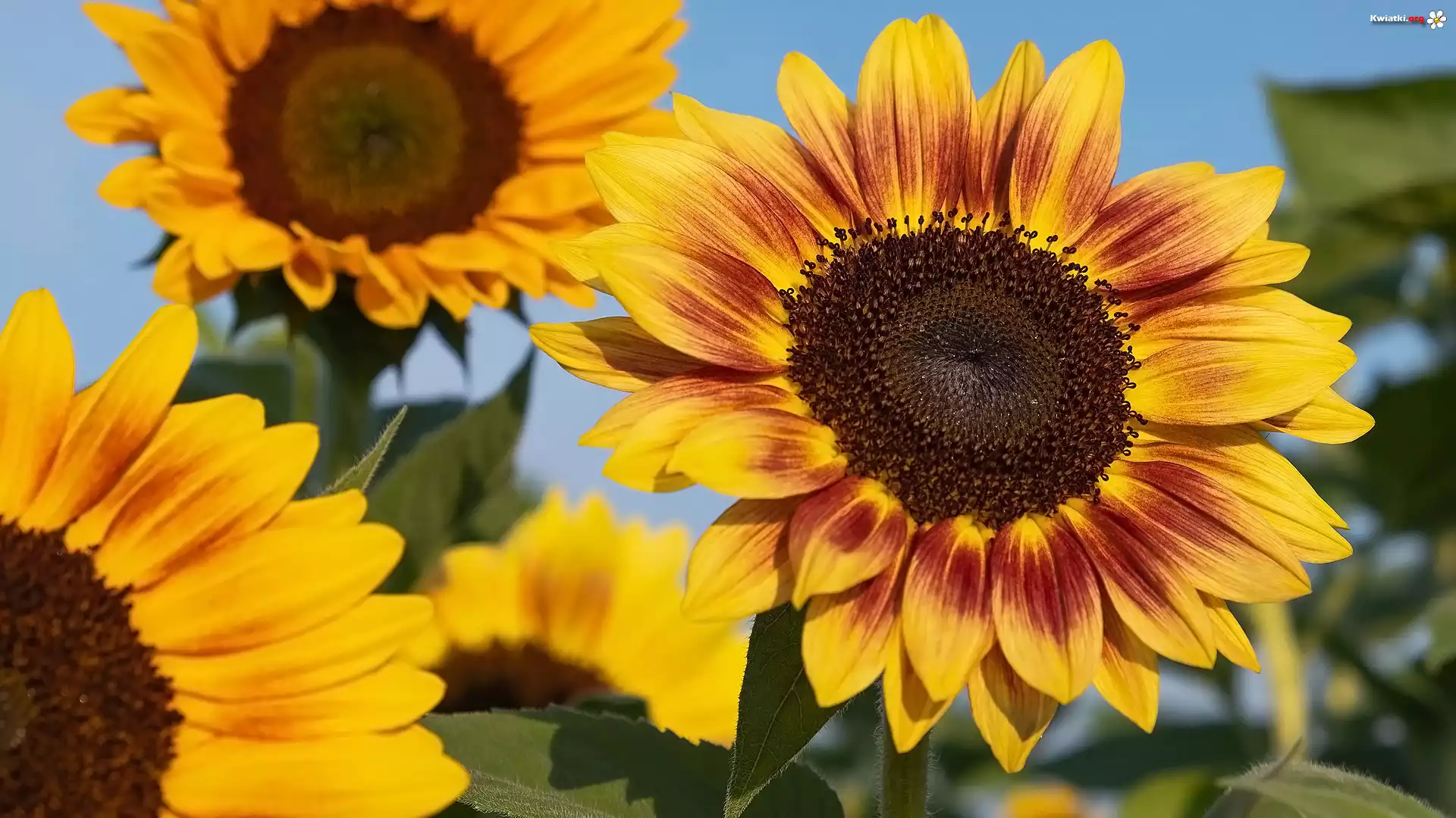 Słoneczniki, Brązowo-żółte, Kwiaty - Zdjęcia