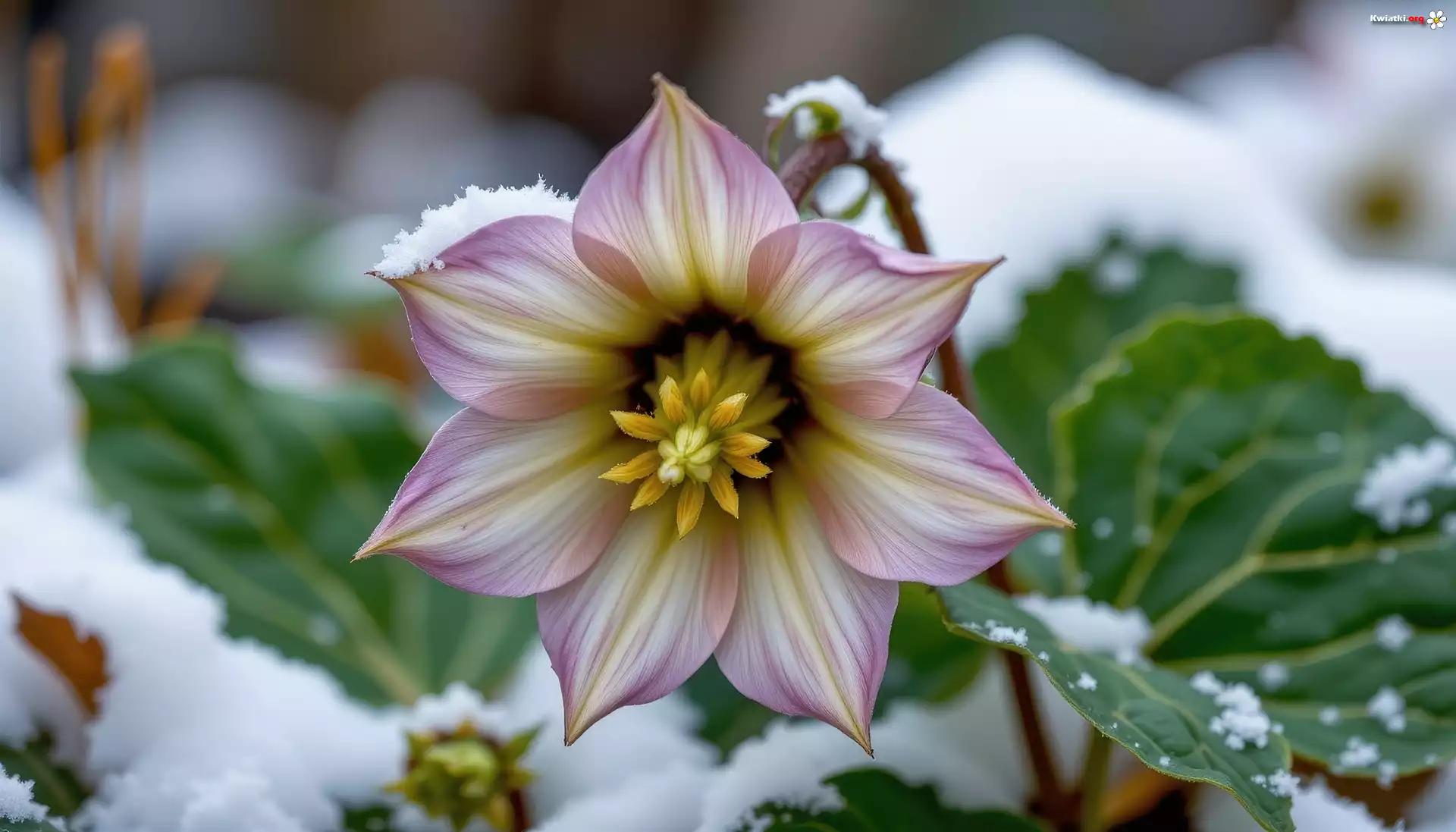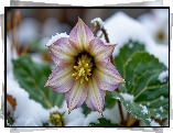 Kwiat Ciemiernik, Kwiat, Liście, Śnieg, Grafika AI