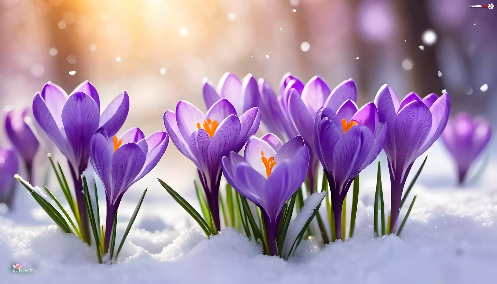 Grafika, Fioletowe, Krokusy, Śnieg - Zdjęcia