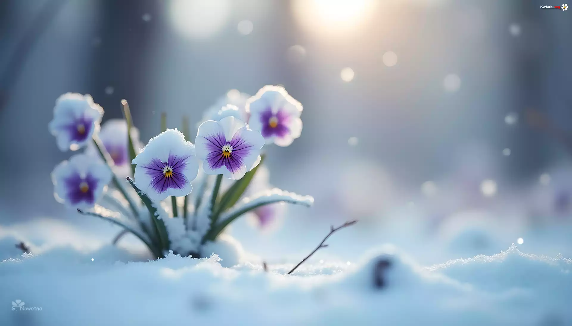Bratki, Śnieg, Zima, Grafika, Kwiaty - Zdjęcia