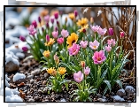 Żółte, Różowe, Kwiaty, Śnieg - Zdjęcia