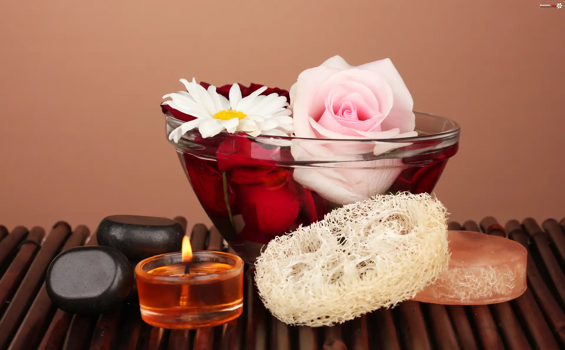 SPA, Świeca, Kamienie, Miseczka, Róża - Zdjęcia
