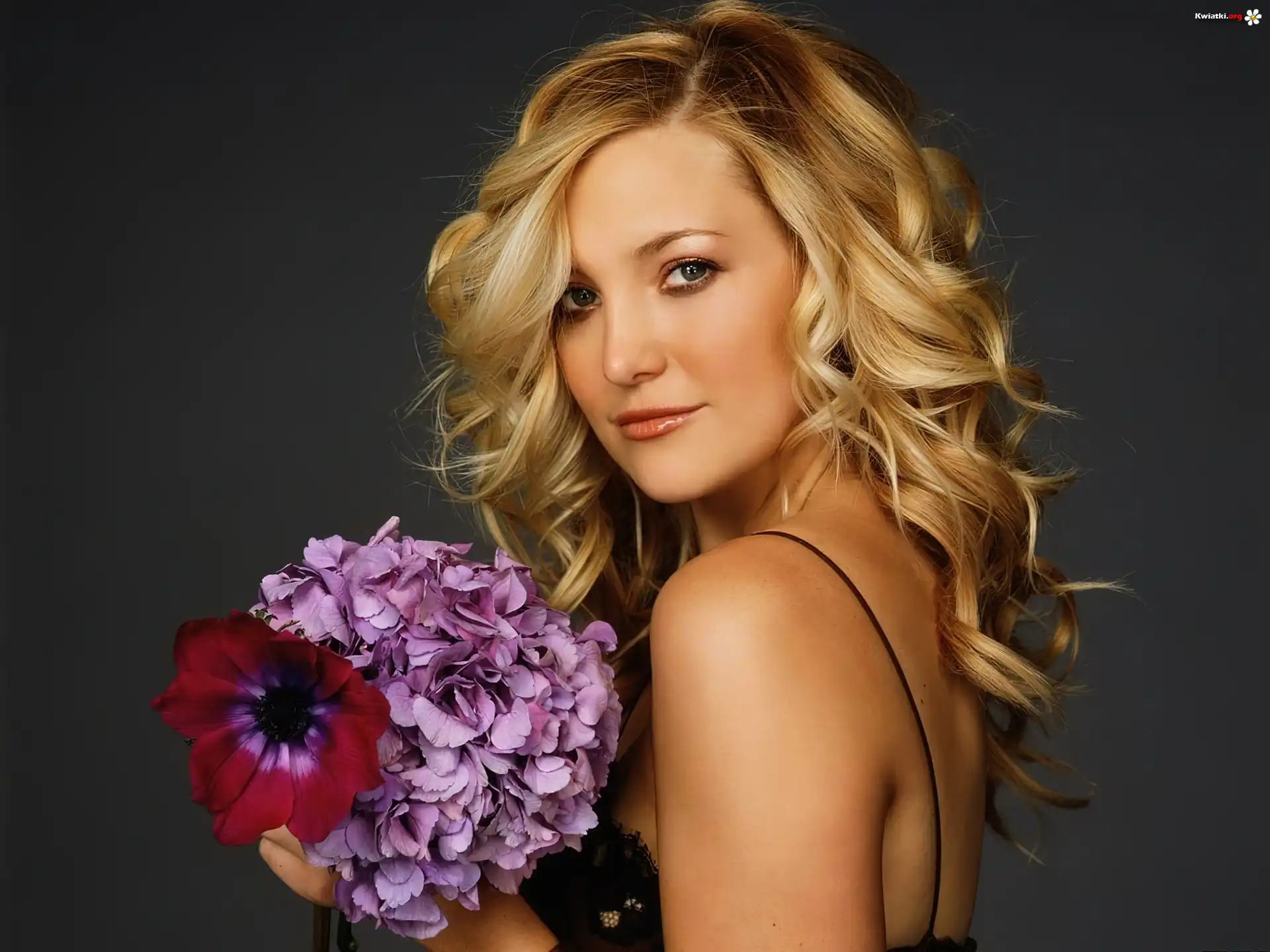 Blondynka, Spojrzenie, Kwiaty, Kate Hudson - Zdjęcia