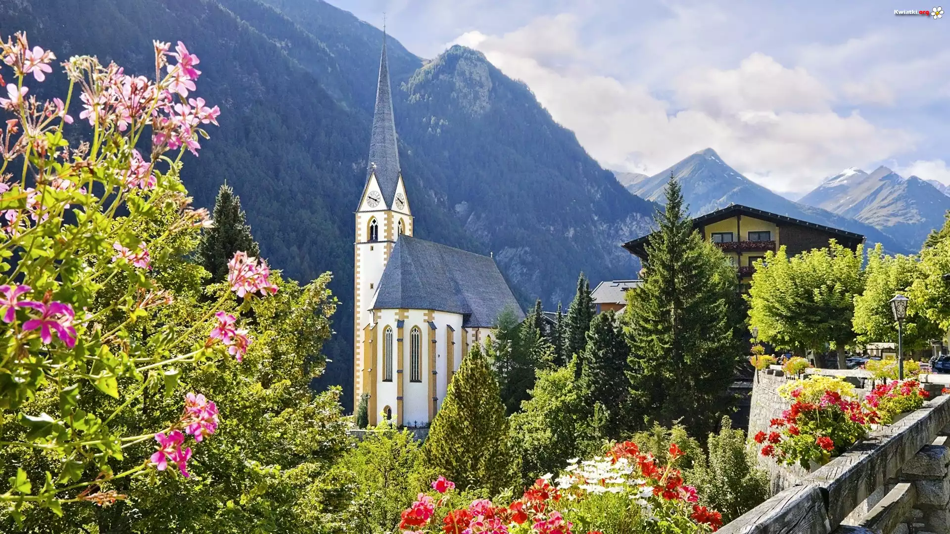 Kościół, St Vinzenz, Góry, Kwiaty, Heiligenblut, Austria - Zdjęcia