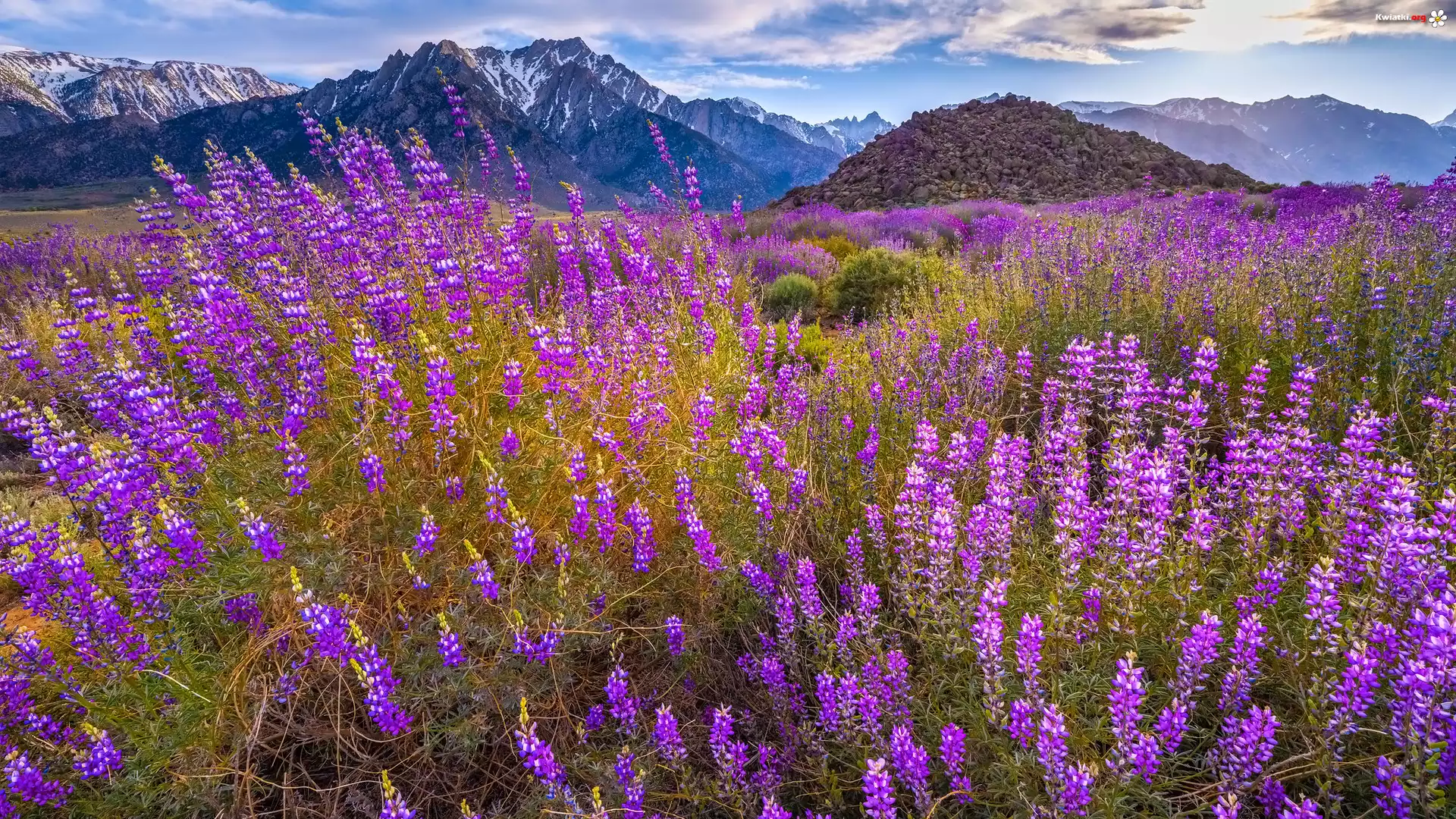 Stany Zjednoczone, Kalifornia, Alabama Hills, Mount Withney, Góry, Kwiaty, Łubin - Zdjęcia