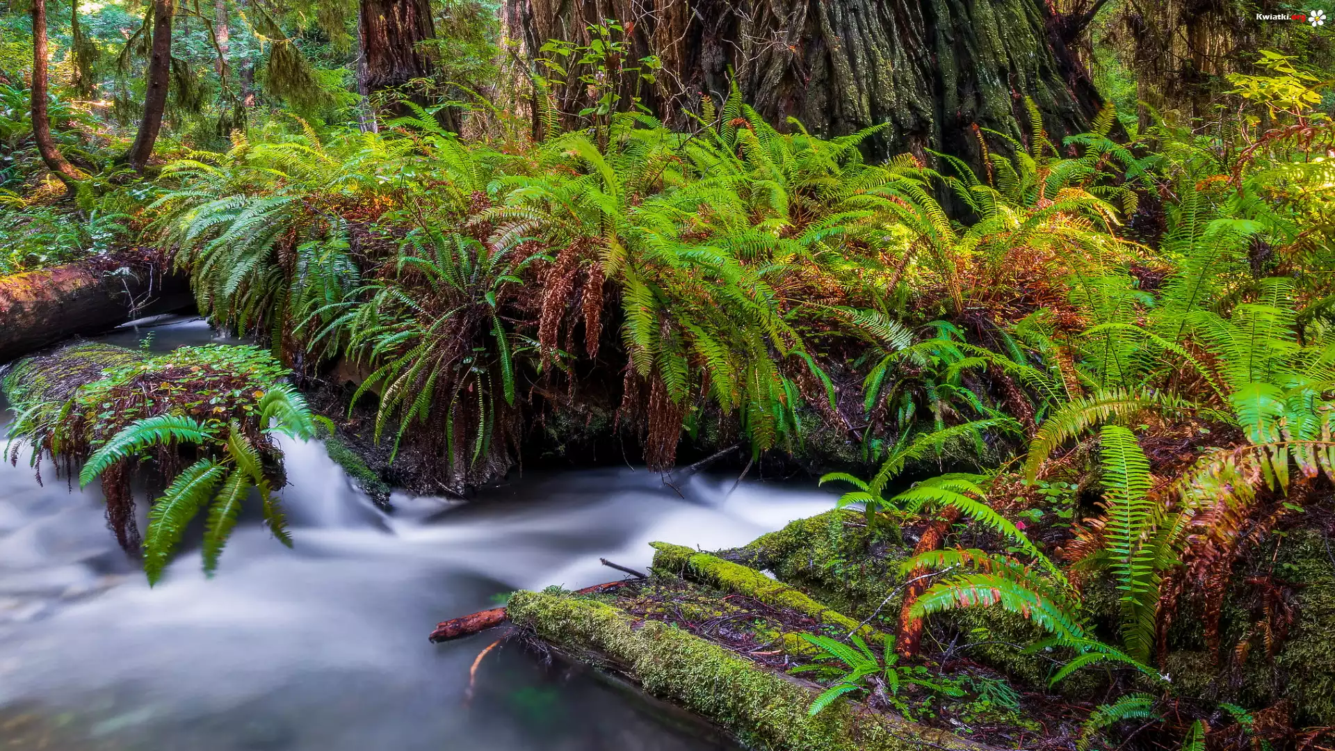 Kwiat Rzeka, Prairie Creek, Paprocie, Las, Redwoods State Park, Kalifornia, Stany Zjednoczone